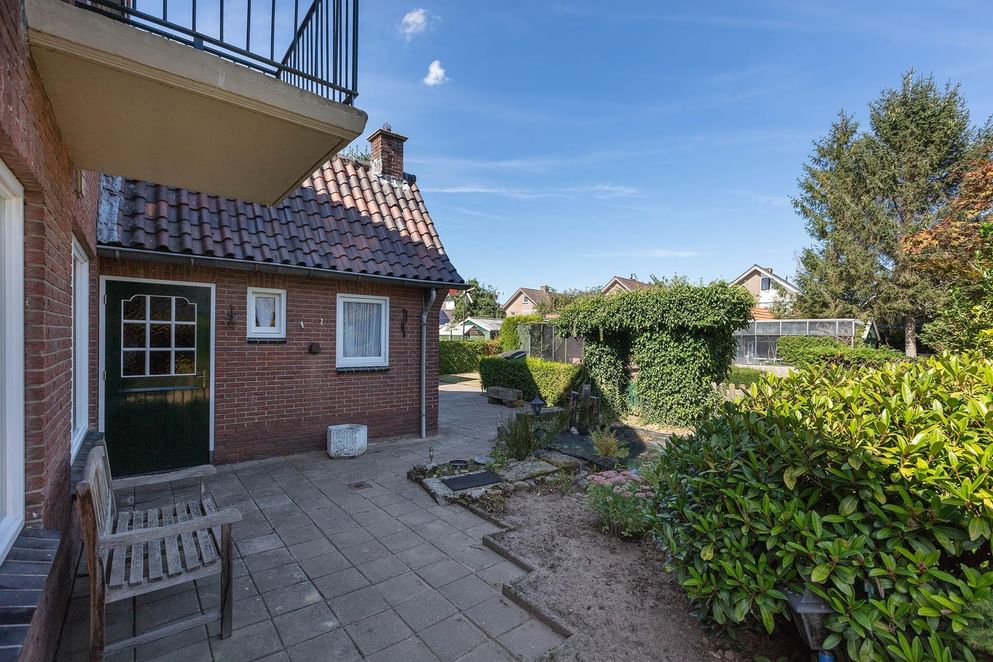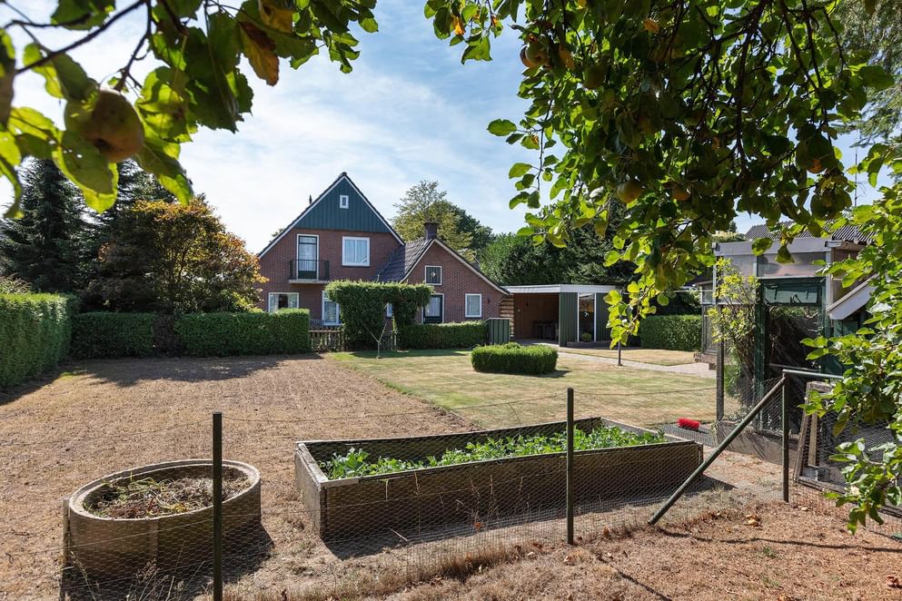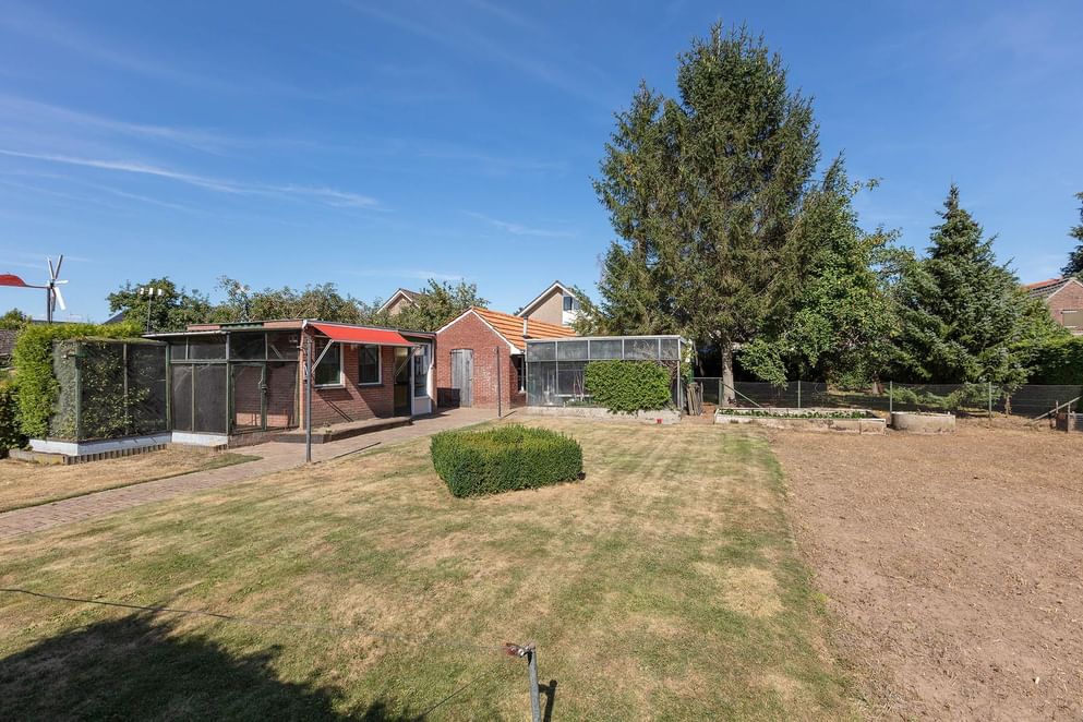 De groene diepe achtertuin biedt veel privacy en beschikt over twee stenen schuren, waarvan één ingericht als volière. Daarnaast is er genoeg ruimte over om te genieten van het buitenzijn. Is tuinieren je hobby? Dan heb je hier volledig de mogelijkheid om je uit te leven en om het maximale uit je tuin te halen. De ruimte in combinatie met de appelboom en perenboom bieden daarnaast een goede basis om aan de slag te gaan met het verbouwen van je eigen groente en fruit!