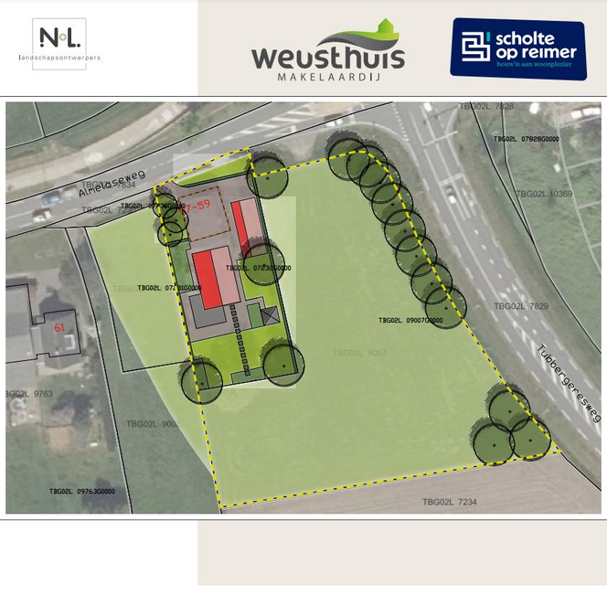 Op deze locatie staan thans nog de restanten van een woonhuis. Deze dienen door koper te worden gesloopt, waarna de koper de mogelijkheid heeft om hier met de ontwikkelaar Scholte op Reimer een prachtig vrijstaand woonhuis van maximaal 1000 m3 te realiseren met bijgebouwen tot maar liefst 200 m². Op de voorbeeld situatieschets als getekend door NL landschapsontwerpers, kan het woonhuis een stuk naar achteren gebouwd worden op het perceel.