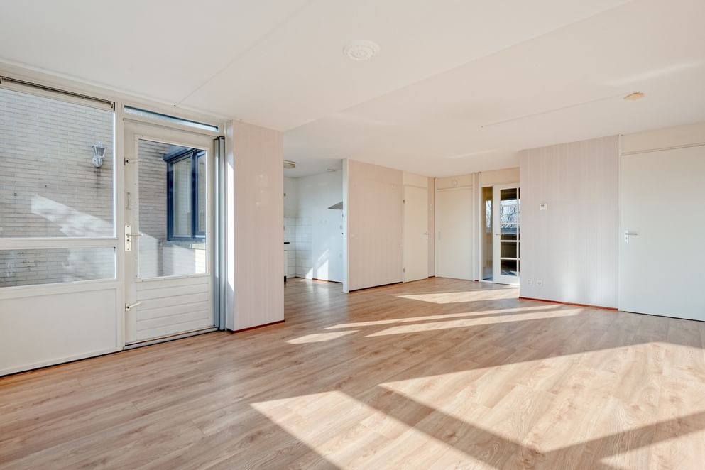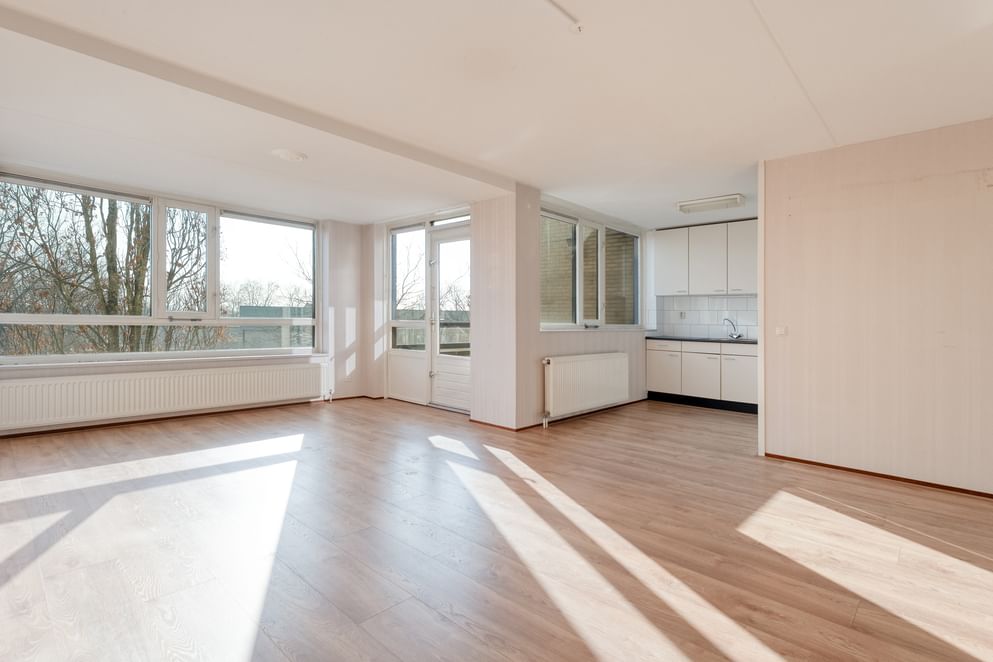 Via de galerij bereik je de voordeur van het appartement. Bij binnenkomst kom je in de hal, die toegang geeft tot één van de slaapkamers en separaat toilet. De lichte woonkamer is prettig ingedeeld en biedt volop ruimte voor zowel een comfortabele zithoek als een eethoek. Vanuit de woonkamer heb je toegang tot de open keuken, die functioneel is ingericht en volop mogelijkheden biedt om deze naar jouw eigen smaak te moderniseren. De badkamer is praktisch uitgevoerd en voorzien van een inloopdouche, wastafel en toilet. Vanuit de woonkamer bereik je tevens de tweede slaapkamer. Daarnaast beschikt het appartement over een separate berging, ideaal voor extra opslag en geschikt voor een wasmachineopstelling.