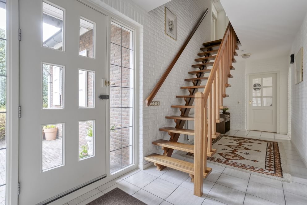 Je komt binnen in de royale centrale hal, voorzien van de meterkast en de trapopgang naar de eerste verdieping. Vanuit de hal heb je toegang tot alle vertrekken op de begane grond.