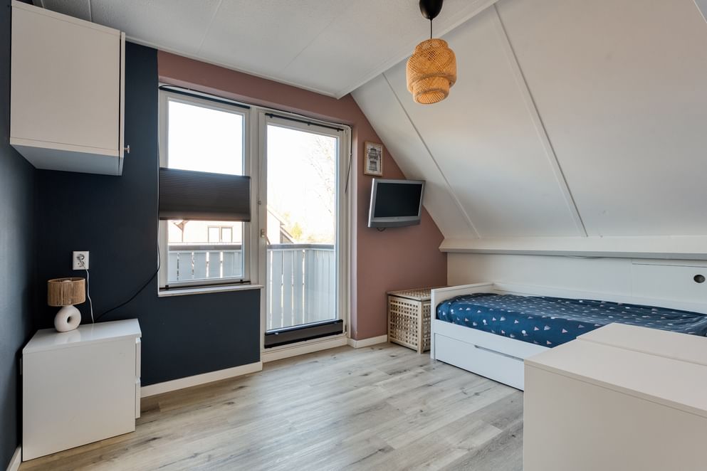 De lichte woonkamer met erker zorgt voor een prettige en ruimtelijke sfeer. De vernieuwde keuken uit 2021 is modern uitgevoerd en biedt voldoende ruimte voor het plaatsen van een eettafel, ideaal voor gezellige momenten met het gezin. De gehele begane grond is bovendien voorzien van comfortabele vloerverwarming. Op de begane grond bevindt zich een multifunctionele kamer met directe toegang tot de badkamer, waardoor slapen en baden op de begane grond hier mogelijk is. Op de eerste verdieping bevinden zich drie slaapkamers, waarvan de ruime master bedroom is uitgerust met een sauna — een heerlijke plek om te ontspannen. Daarnaast is er op deze verdieping een tweede badkamer aanwezig, wat zorgt voor extra comfort. Via een in 2022 gerealiseerde vaste trap bereik je de tweede verdieping. Deze open ruimte is multifunctioneel en kan naar wens worden ingericht, bijvoorbeeld als extra slaapkamer, werkruimte of hobbyruimte.