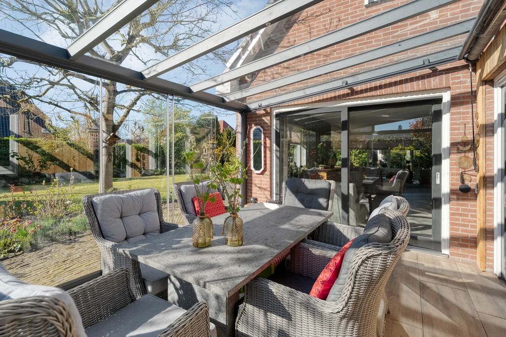 De woning beschikt over een zeer ruime, rondom gelegen tuin met veel privacy. De oprit biedt plaats aan circa vier auto’s. In de tuin bevindt zich daarnaast een houten schuurtje, voorzien van elektra en een werkbank—ideaal voor hobbyisten of extra opslag. Aansluitend aan de woning vind je een gezellige serre met zonwering en een heater, waardoor je hier het hele jaar door comfortabel kunt genieten van het buitenleven.