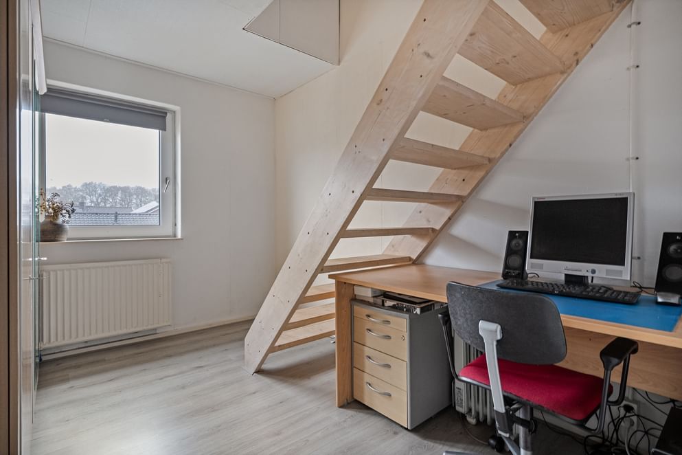 Via een vaste trap is de tweede verdieping bereikbaar. De verdieping is in 2014 voorzien van een dakkapel, welke zorgt voor extra ruimte. Tevens kan de kamer ook ingericht worden als extra slaapkamer, werk- of hobbykamer.