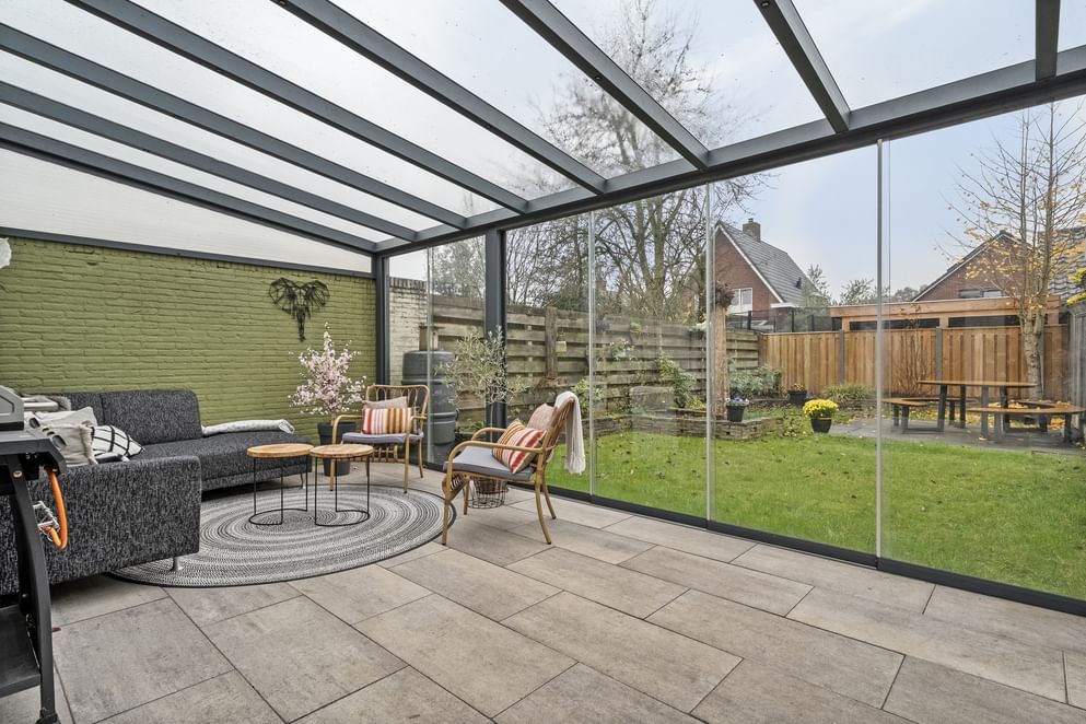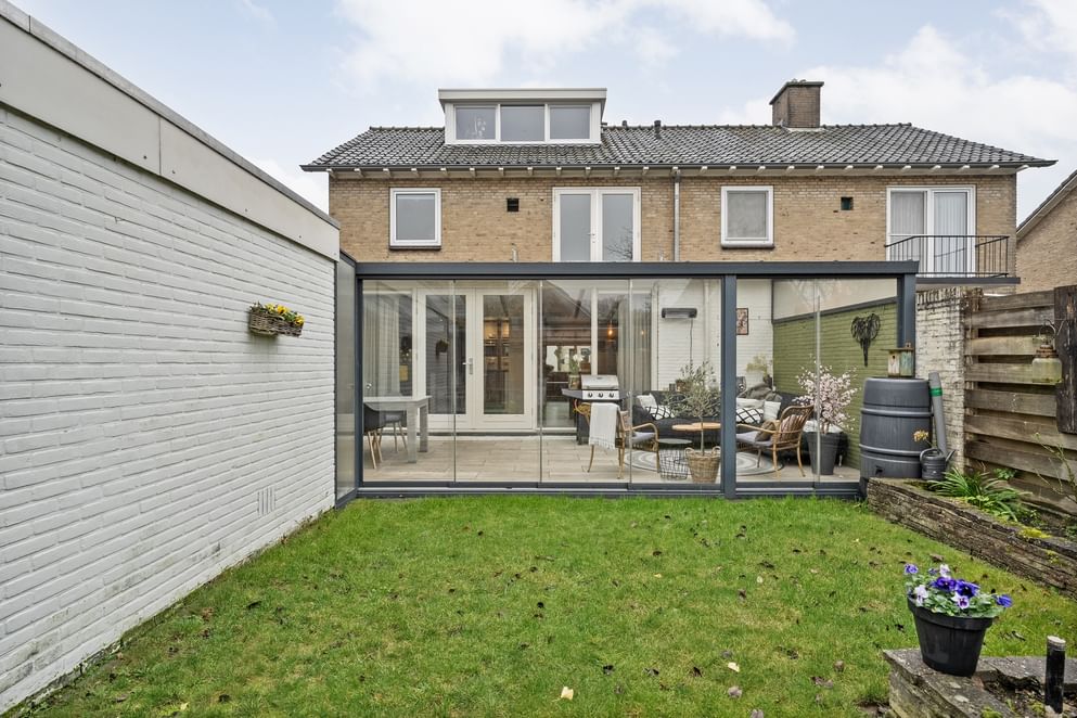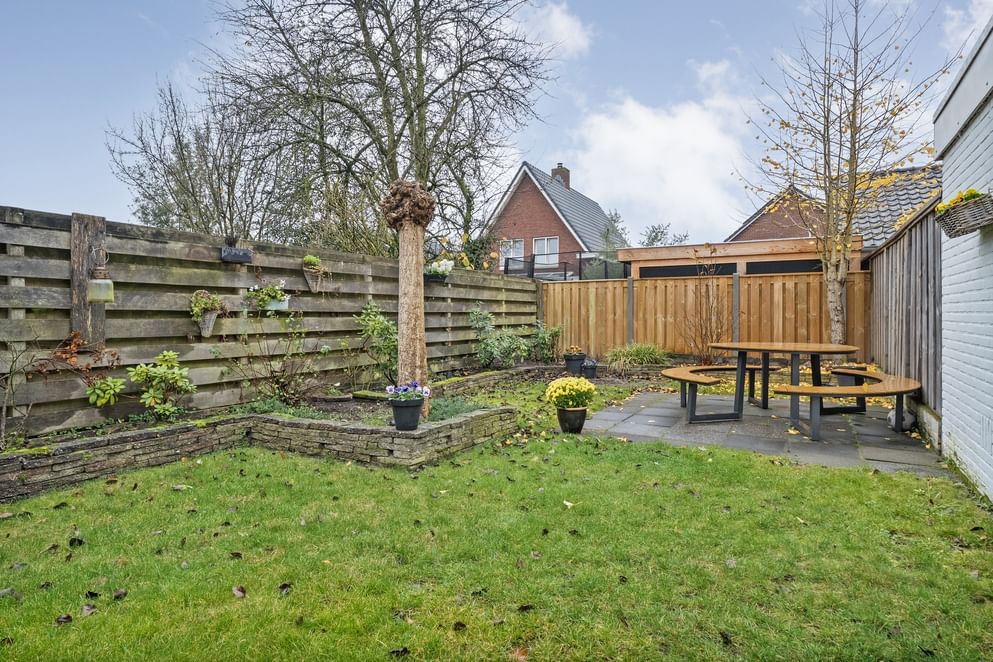 De woning beschikt over zowel een voor- als achtertuin. De achtertuin is verzorgd en deels betegeld. De schutting rondom biedt veel privacy, en dankzij de ligging op het noordwesten kan je in de middag en avond genieten van de zon. Aan de voorzijde zorgt de oprit voor voldoende parkeergelegenheid.