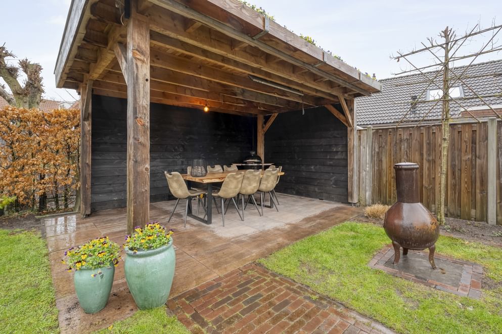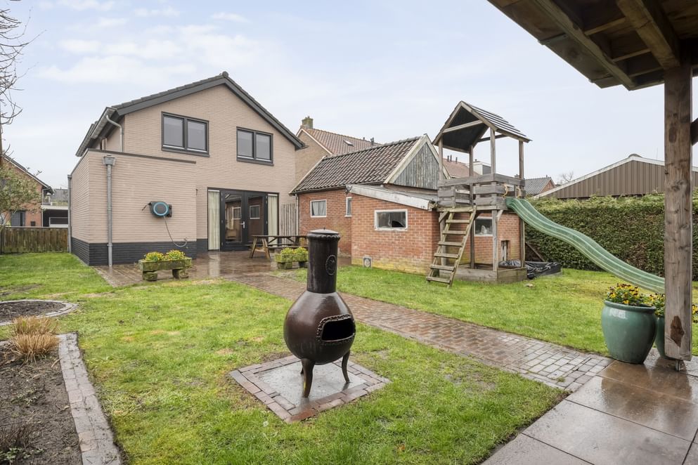 De woning is gelegen op een ruime kavel met voldoende parkeergelegenheid op eigen terrein. Op dit perceel bevinden zich naast het royale woonhuis ook nog een vrijstaande garage met aangebouwde berging en een fraaie overkapping. Op zomeravonden kun je hier heerlijk genieten van de bbq en de spelende kinderen in de tuin.