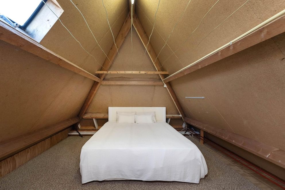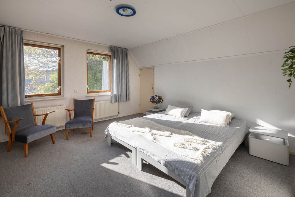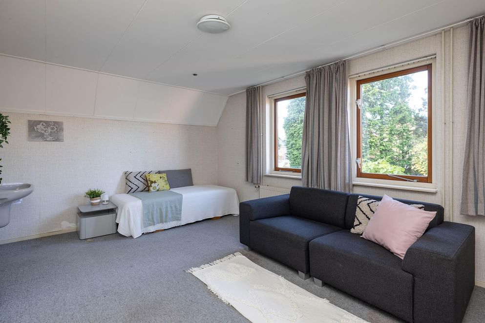 De zolder is thans te bereiken middels een vlizotrap, maar hier kan eventueel ook een vaste trap worden geplaatst. Vanuit de overloop op deze verdieping heb je toegang tot een royale slaapkamer en extra bergruimte/droogzolder, ideaal voor het opbergen van spullen die je niet dagelijks nodig hebt.