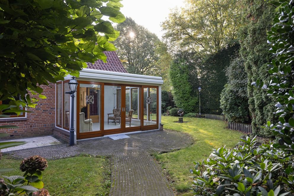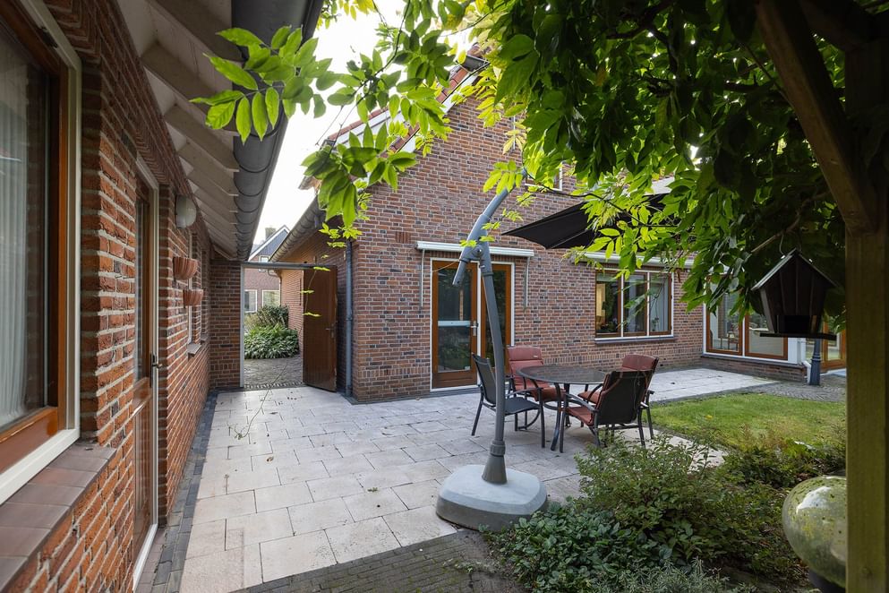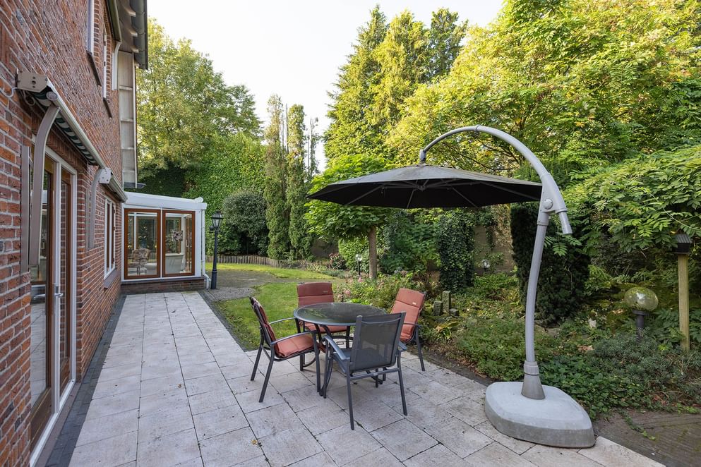 De goed onderhouden tuin biedt een gezellig terras en veel beschutting, wat zorgt voor optimale privacy. De royale voor- en zijtuin zijn prachtig aangelegd en maken de tuin compleet. Vanuit de keuken, serre en via een achterom is de tuin eenvoudig bereikbaar. Een praktische berging biedt ruimte voor fietsen en tuingereedschap. Daarnaast beschikt de woning over een ruime, nette oprit, ideaal voor het parkeren van meerdere auto's