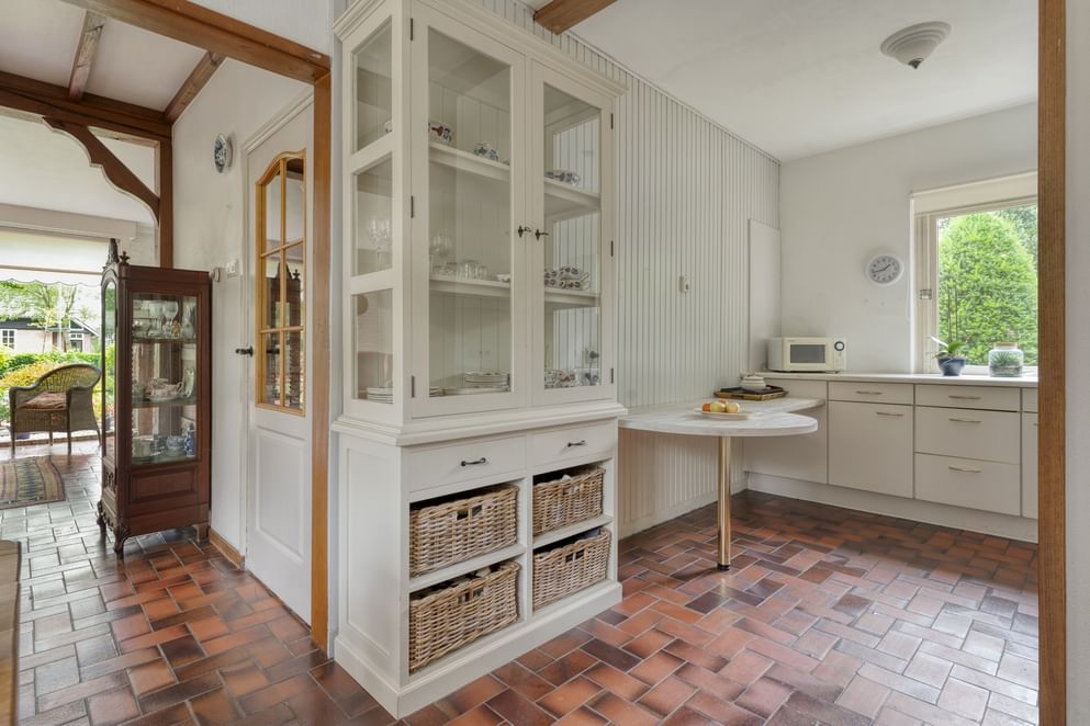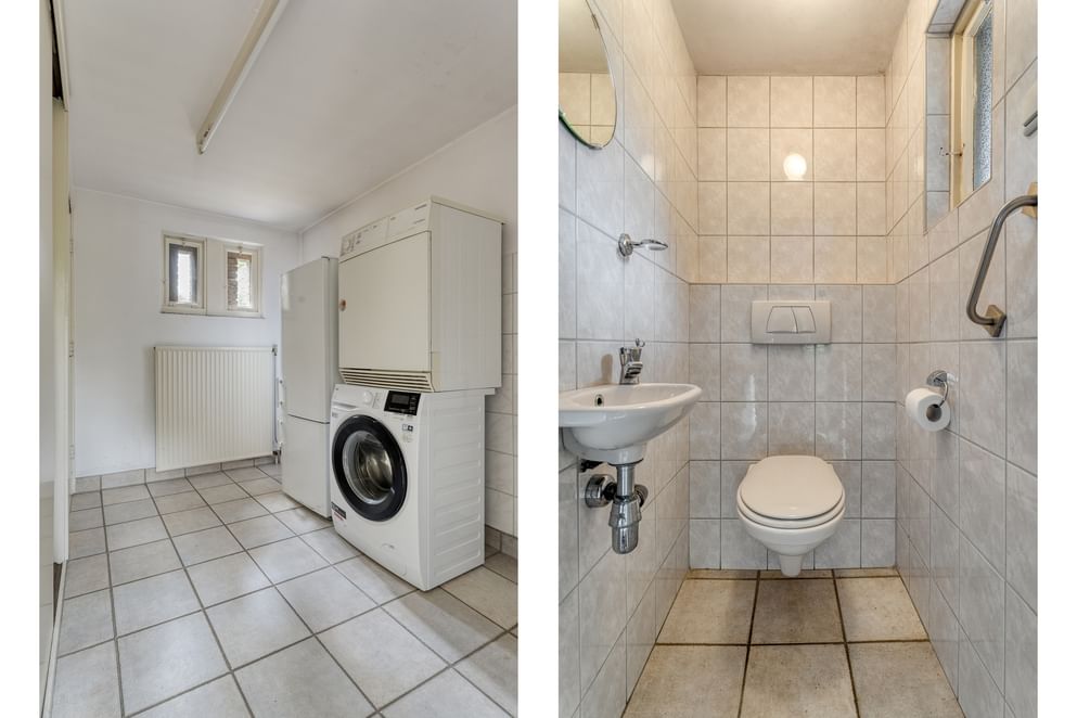 Je betreedt de woning via de ruime hal aan de voorzijde. Vanuit de hal heb je toegang tot de ruime lichte woonkamer en keuken. Aangrenzend aan de woonkamer is een comfortabele later bijgebouwde serre te vinden, welke beschikt over vloerverwarming en een loopdeur richting de voortuin. Vanuit de keuken is een doorloop naar bijkeuken, waar het toilet, de meterkast en de aansluiting voor de wasmachine en droger te vinden zijn. Vanuit de bijkeuken is tevens de achtertuin te bereiken.