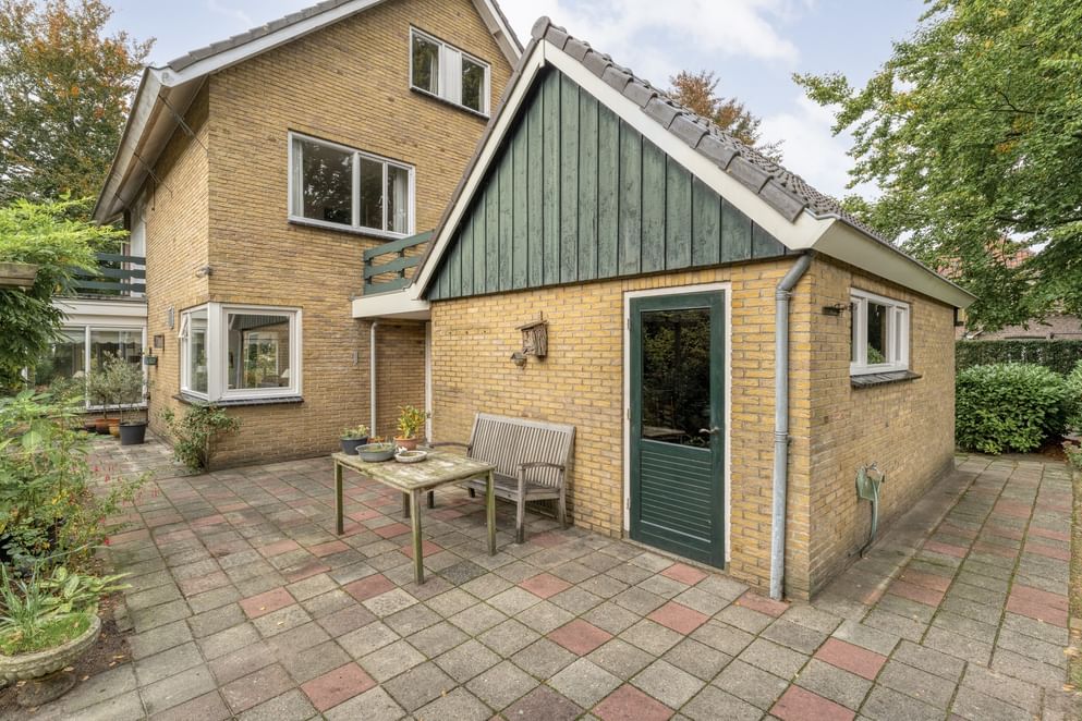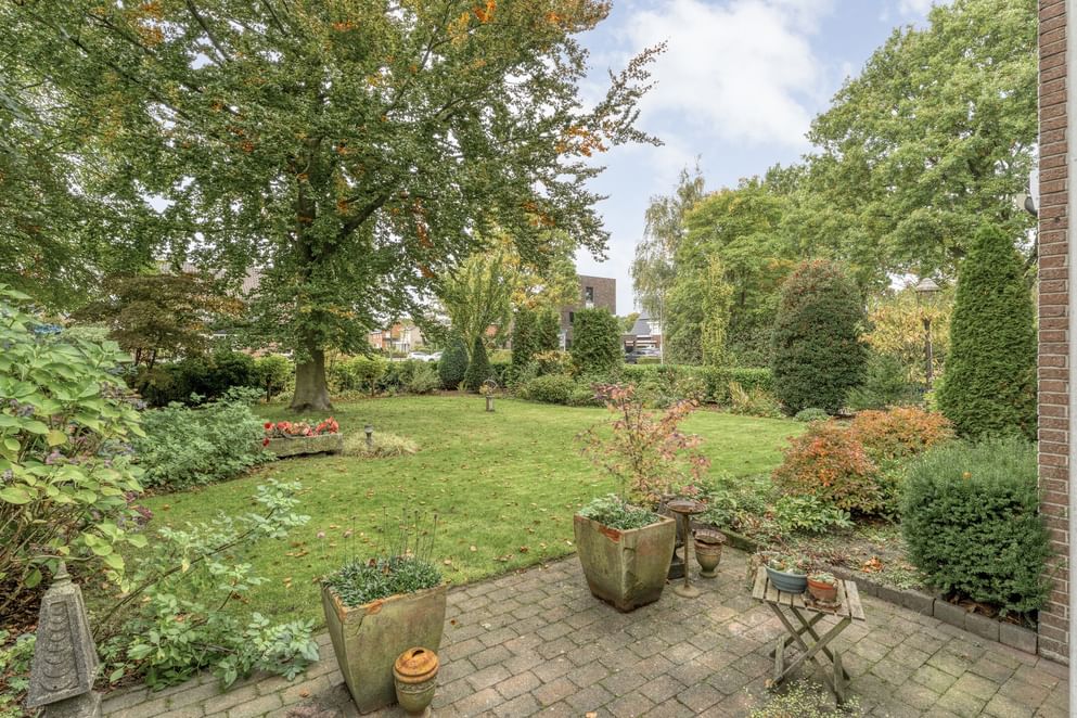 Buiten beschikt de woning over een ruime tuin rondom, waar je kan genieten van privacy en groen. Doordat de tuin rondom de gehele woning ligt, kan de hele dag van de zon genoten worden. Parkeren kan op eigen terrein of in de aangebouwde garage, die is voorzien van verwarming, water en elektra.
