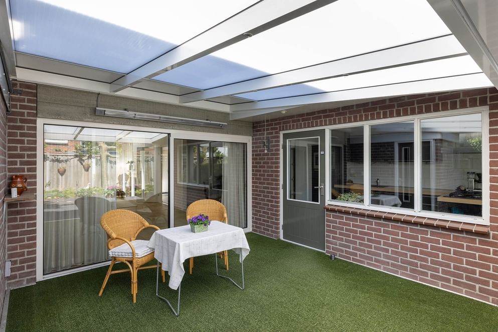 - Overdekt terras tussen keuken en garage