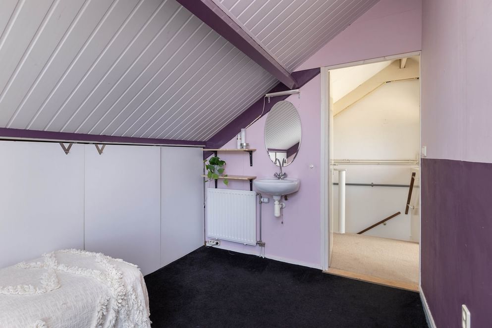 Via de vaste trap kom je op de tweede verdieping. Hier zijn nog twee slaapkamers, beide iets kleiner van formaat. Ze zijn goed te gebruiken als slaap-, logeer- of werkkamer. In één van de kamers is een wastafel aanwezig. Op de overloop hangt de cv-ketel en is er extra bergruimte achter het knieschot.
