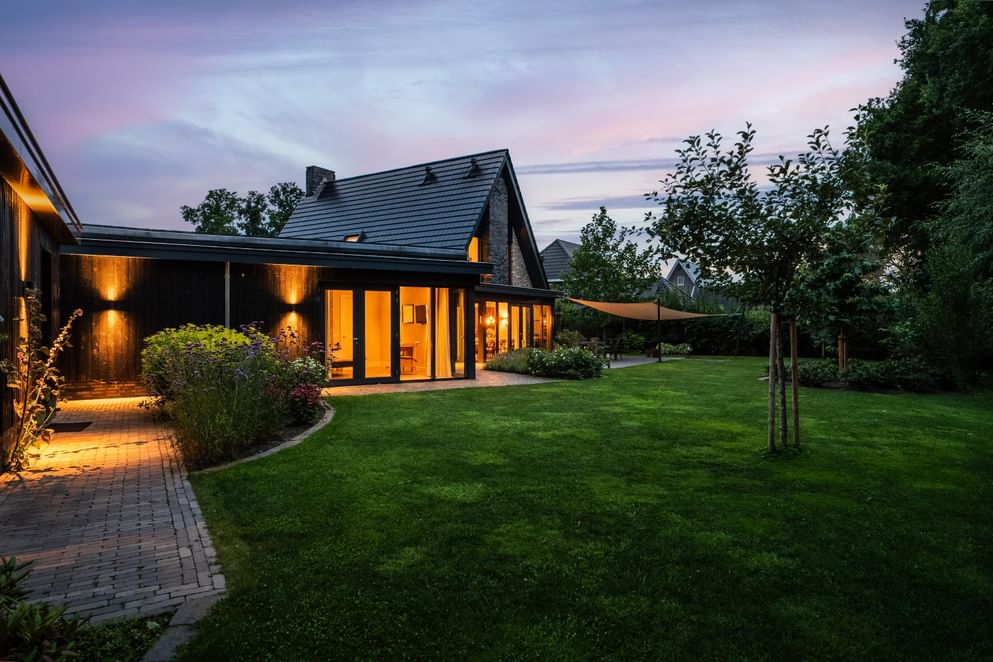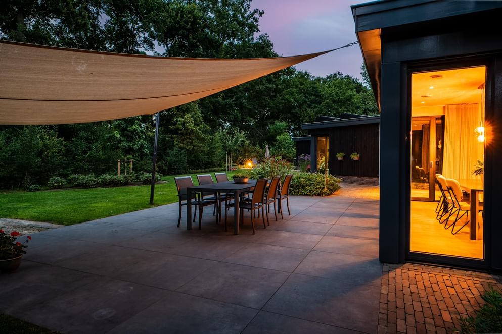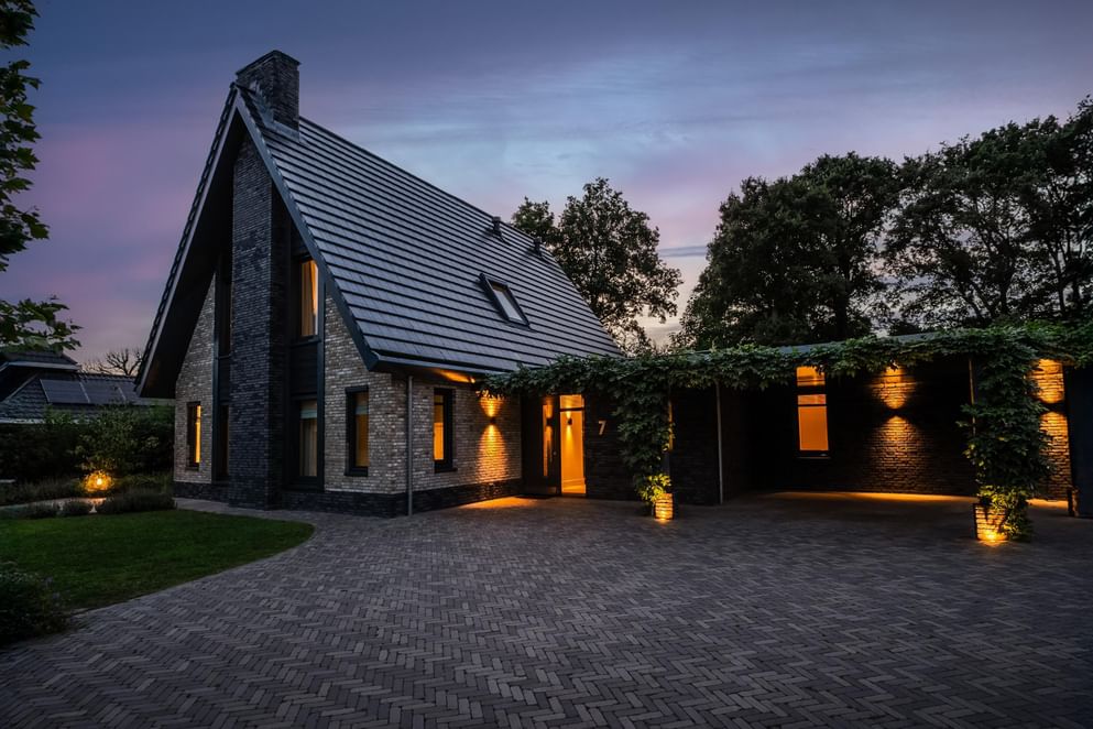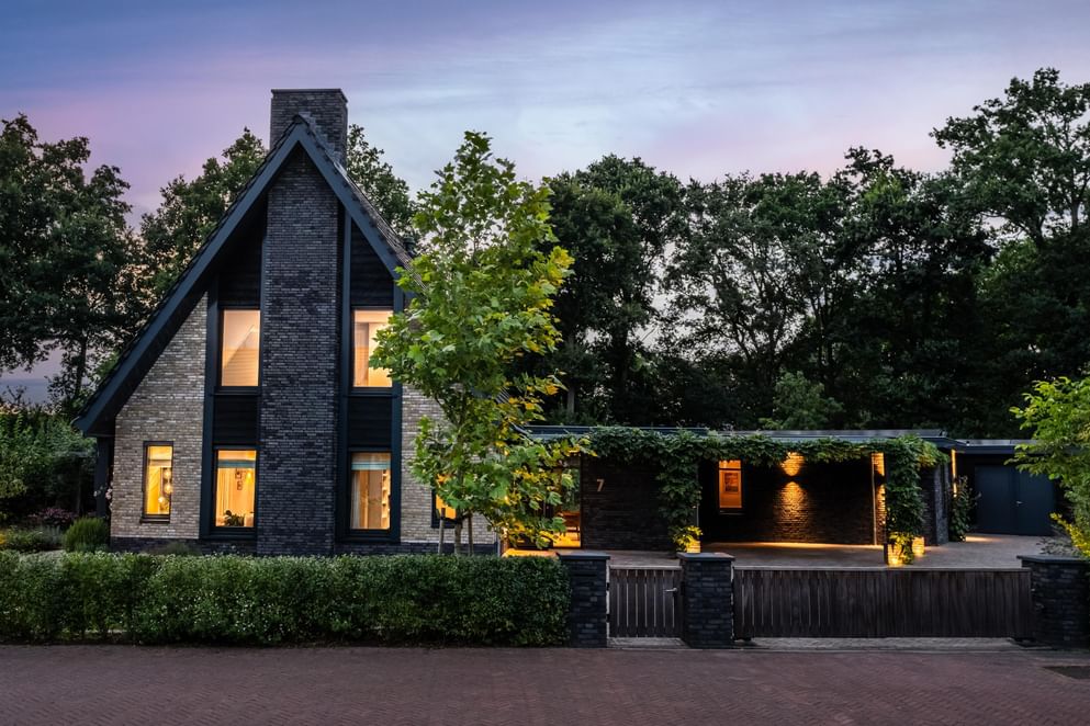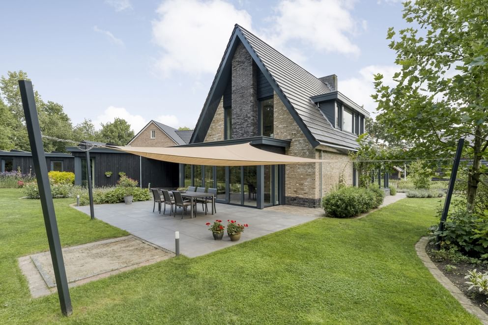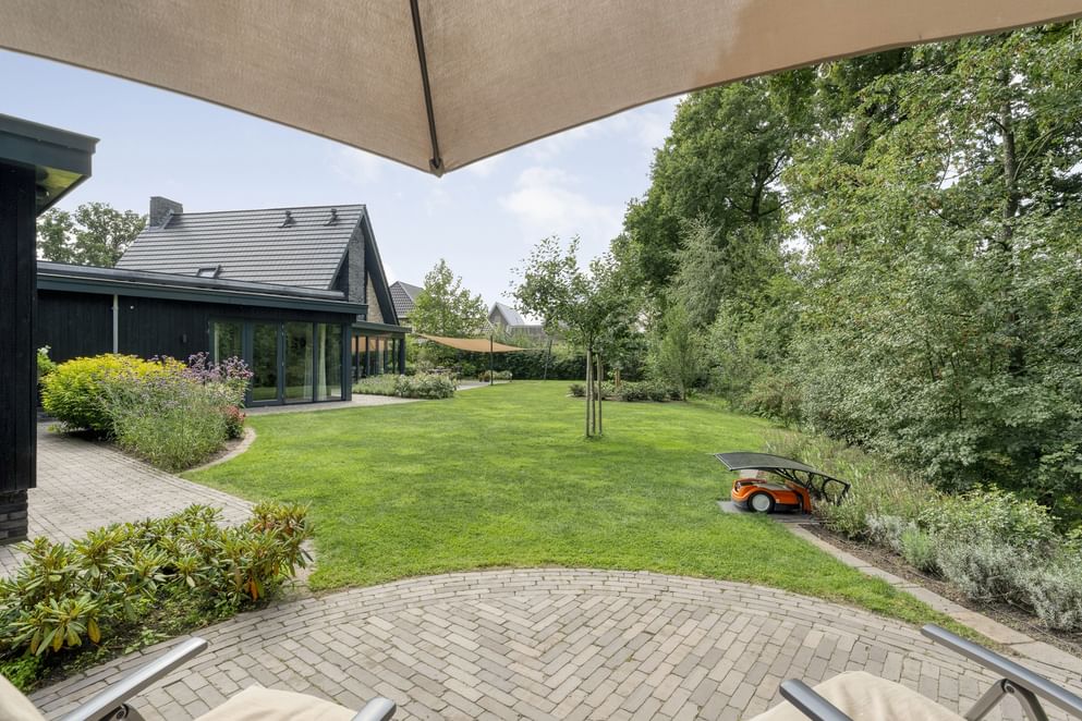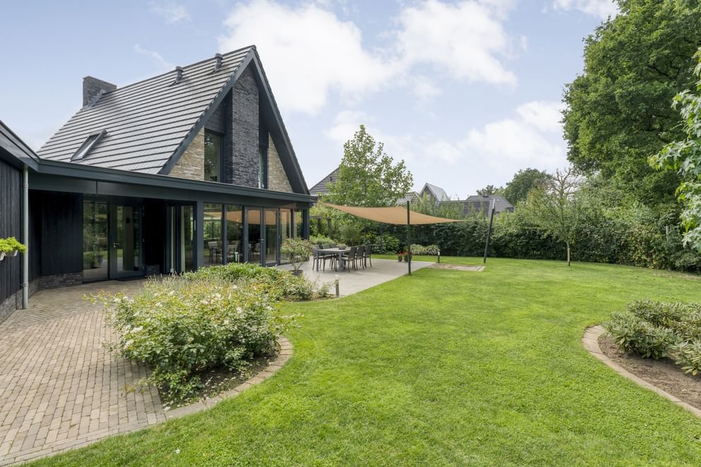 Door een elektrisch te openen poort rijd je dit prachtige erf op. Er bevinden zich hier meerdere parkeermogelijkheden op de oprit en onder de royale carport, inclusief voorbereiding van een aansluitpunt voor het opladen van een elektrische auto. Rondom de woning ligt een fraai aangelegde tuin, ook onder architectuur ontworpen. Het fraaie materiaalgebruik voor bestrating en diverse terrassen springt gelijk in het oog. Het ruime gazon welke wordt onderhouden door een robotmaaier, de borders en de volwassen begroeiing zorgen voor een aangename sfeer in de tuin welke veel privacy biedt. Aan de achterzijde van het perceel bevinden zich een aantal oude eiken die zorgen voor privacy en rust. De tuin is ideaal voor lange zomeravonden of buiten koken onder de overkapping.