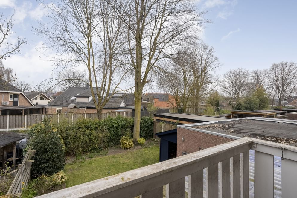 Via de vaste trap bereik je de eerste verdieping. Vanaf de overloop heb je naast een inbouw-kledingkast toegang tot drie ruime slaapkamers en een badkamer. Twee goed bemeten slaapkamers aan de voorzijde en een ruime ouderslaapkamer aan de achterzijde van de woning die toegang biedt tot een balkon en ruimte voor een inbouwkast. De badkamer is in 2025 recent vernieuwd en uitgevoerd in een moderne stijl. Deze is van alle gemakken voorzien, waaronder een toilet, een wastafel met meubel en een inloopdouche.
