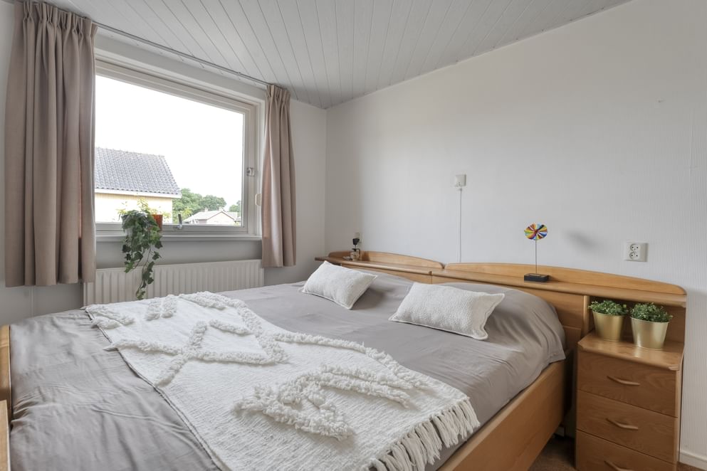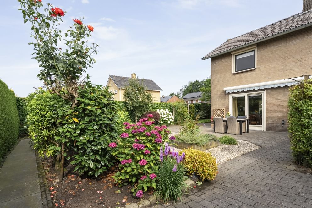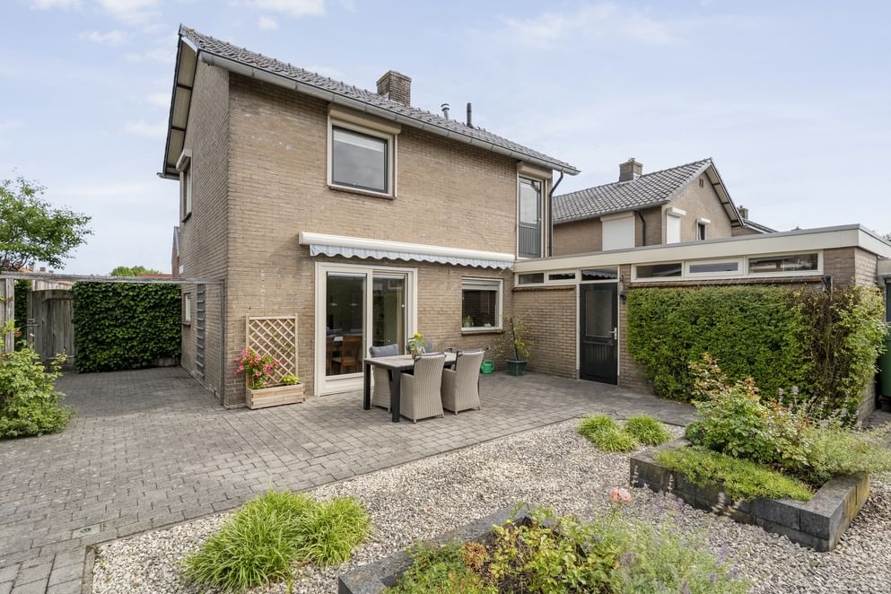De achtertuin ligt gunstig op het zuidwesten en biedt veel privacy, waardoor je hier tot in de avond van de zon kunt genieten. Zowel de achtertuin als de zijtuin zijn grotendeels bestraat, wat zorgt voor een onderhoudsvriendelijke en praktische buitenruimte. Vanuit de woonkamer én de bijkeuken loop je zo de tuin in. Achterin staat een tuinhuisje met een aangebouwde berging – ideaal voor het opbergen van fietsen, tuingereedschap of andere spullen. Aan de voorzijde biedt de oprit plaats aan twee auto's op eigen terrein.