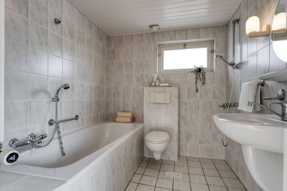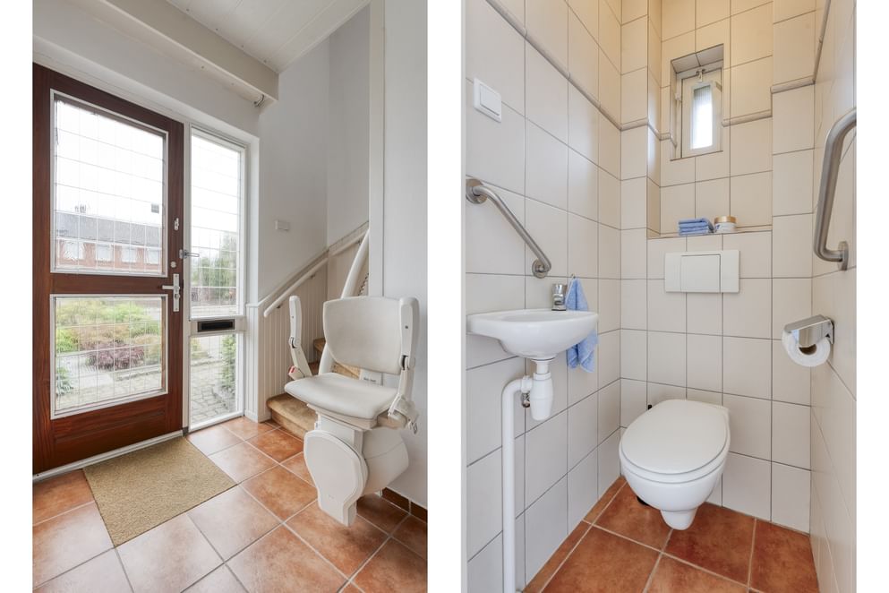 Via de overloop zijn drie slaapkamers bereikbaar, elk voorzien van een vaste kast en rolluiken. De badkamer beschikt over een ligbad, douchehoek, toilet en wastafel. Daarnaast is de verdieping bereikbaar met een traplift.