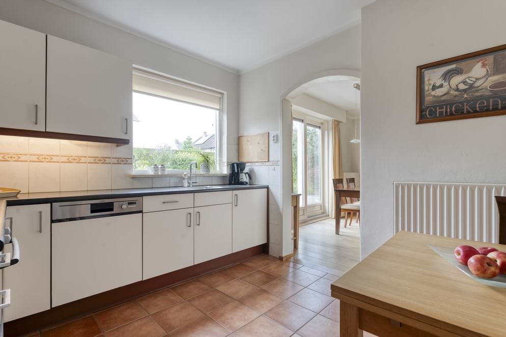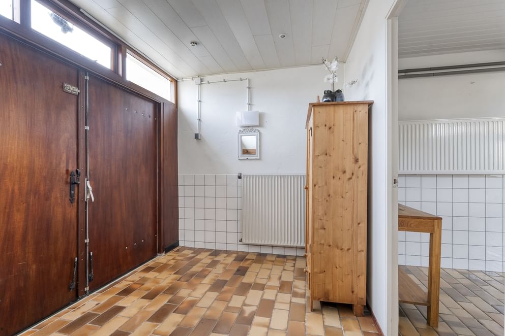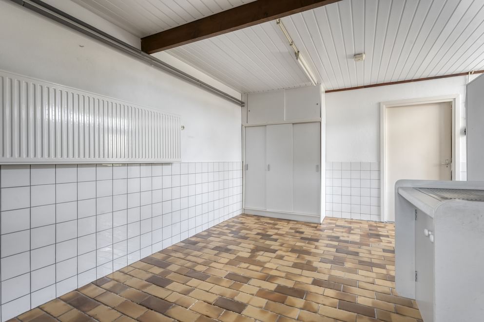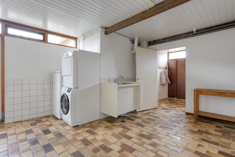 Je betreedt de woning via de entree, waar zich het toilet, de meterkast en de trapopgang naar de eerste verdieping bevinden. Vanuit de hal heb je toegang tot de woonkamer. De woonkamer is ruim en volledig naar eigen wens in te richten. Dankzij de grote schuifpui heb je mooi zicht op de achtertuin en direct toegang tot het terras. Vanuit de woonkamer loop je door naar de keuken, die is voorzien van diverse inbouwapparatuur, waaronder een 4-pits gasfornuis, afzuigkap, vaatwasser en oven. Daarnaast is er een praktische verdiepte kelderkast aanwezig. Aansluitend aan de keuken bevindt zich de berging met openslaande deuren naar de oprit. Vanuit deze ruimte kom je in de ruime bijkeuken, waar je de witgoedaansluitingen vindt, een vaste kast en een keukenblok. Vanuit de bijkeuken is er ook toegang tot de achtertuin. Achter de bijkeuken is nog een extra ruimte die ideaal is als werkplaats, hobbyruimte of extra berging.