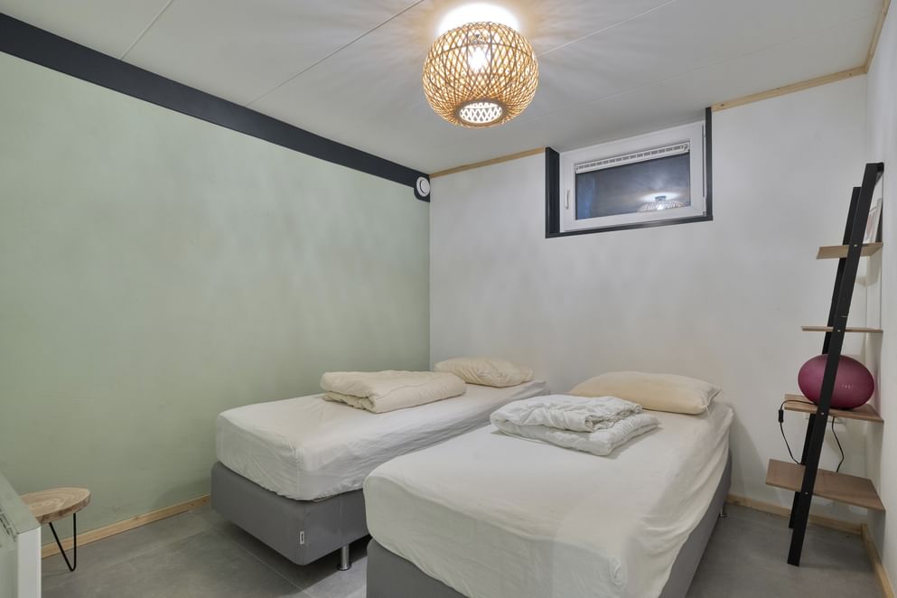 Via een vaste trap bereik je het souterrain. De hal biedt toegang tot een separaat toilet, een handige berging én twee comfortabele slaapkamers.