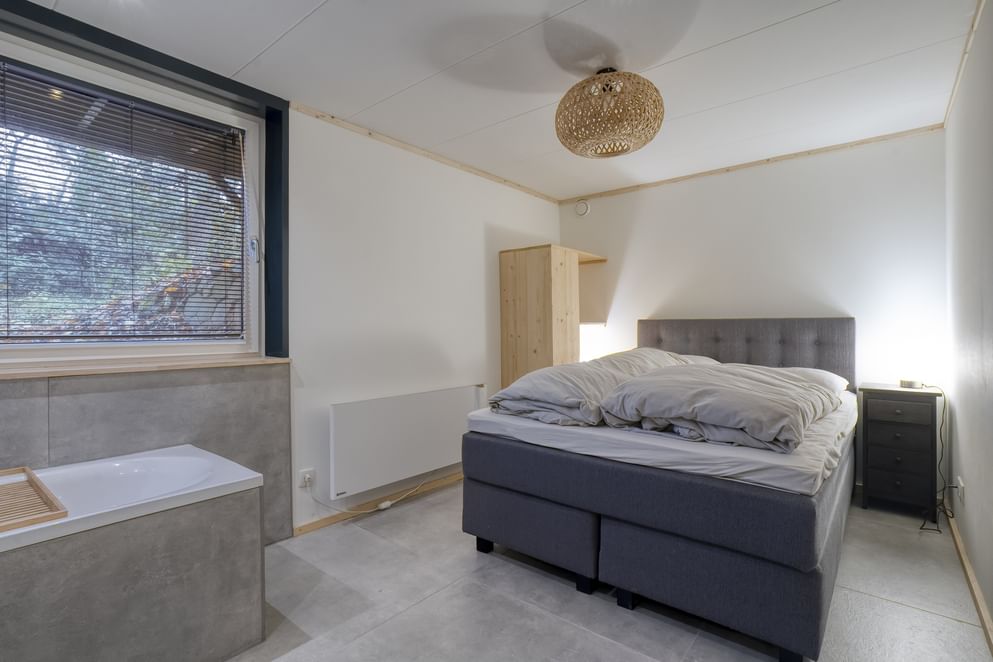 De bungalow beschikt over een lichte en ruime woonkamer waar je comfortabel kunt verblijven, een moderne badkamer en twee slaapkamers. De master bedroom is voorzien van een stijlvol ligbad – een luxe extra die zorgt voor een echt wellnessgevoel in eigen huis.