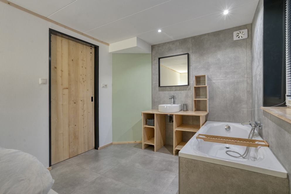 De master bedroom is ruim opgezet en beschikt over een luxe extra: een eigen ligbad en wastafel. Ideaal voor ontspannen ochtenden of een wellnessmoment aan huis.
