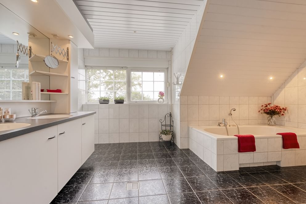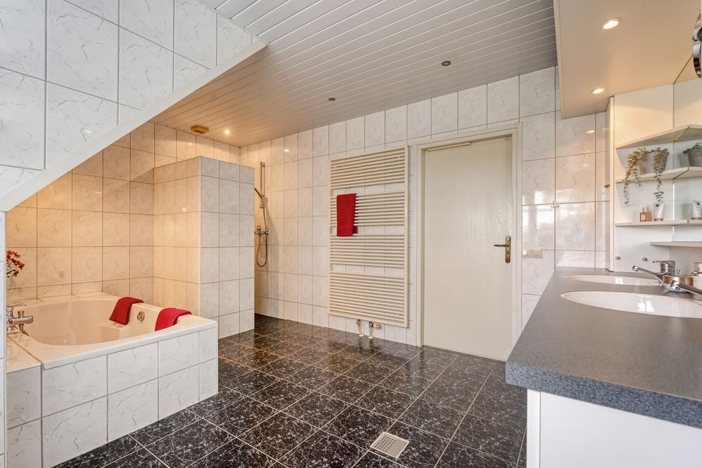 Het woonhuis beschikt naast een dubbele garage met twee elektrisch bedienbare sectionaal deuren en een bijzonder ruim woongedeelte ook nog eens over een kelder welke voor vele doeleinden geschikt is van maar liefst 157 m². Op de begane grond bevinden zich naast de woonvertrekken tevens een slaap- en een badkamer, waardoor je hier eenvoudig levensloopbestendig kunt (in)wonen. De eerste verdieping is voorzien van drie ruime slaapkamers, waarvan de master bedroom beschikt over een royale inloopkast. De riante badkamer is voorzien van een inloopdouche, ligbad met whirlpool en een dubbele wastafel. Ook de zeer ruime zolder boven de dubbele garage is voor diverse doeleinden te gebruiken, waarbij hier bijvoorbeeld eenvoudig een paar extra slaapkamers gerealiseerd kunnen worden. De tweede verdieping boven de hoofdwoning is per vaste trap te bereiken. Hier vind je een grote bergzolder. De woning beschikt over bijzonder veel 'woon'oppervlakte, waardoor een praktijk of kantoor aan huis ook zeker tot de mogelijkheden behoort.