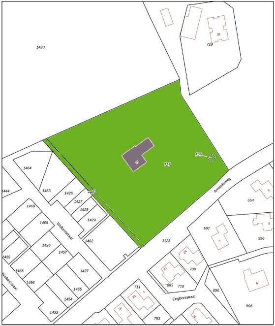 - Op het perceel mag links op het voorerf nog een schuur gebouwd worden van 150 m²