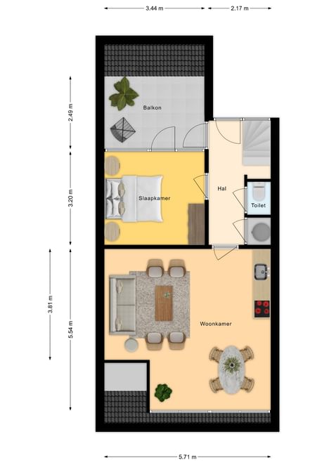 Op de begane grond van het gebouw heeft u toegang tot de eerste verdieping via een vaste trap of lift. Bij het betreden van de lodge komt u binnen in de hal. Aan de linkerzijde vindt u de toegangsdeur tot het toilet. Aan de rechterzijde vindt u de toegangsdeur tot de slaapkamer en het balkon. Via de slaapkamer is het balkon ook te bereiken met een deur. Als u rechtdoor loopt heeft u toegang tot de woonkamer met open keuken. In de hal heeft u toegang tot de tweede verdieping via een vaste trap. Op de tweede verdieping bevind zich nog één slaapkamer en de badkamer.
