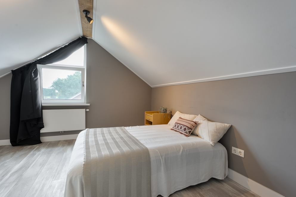 Via vaste trap bereikbare zolderverdieping met overloop, cv-ruimte en derde modern afgewerkte slaapkamer.