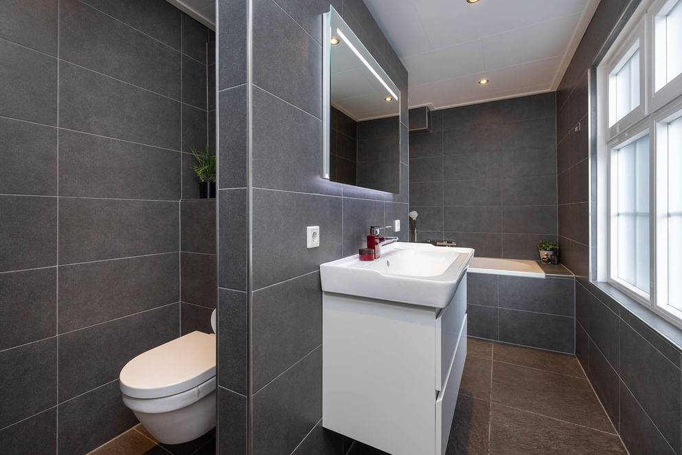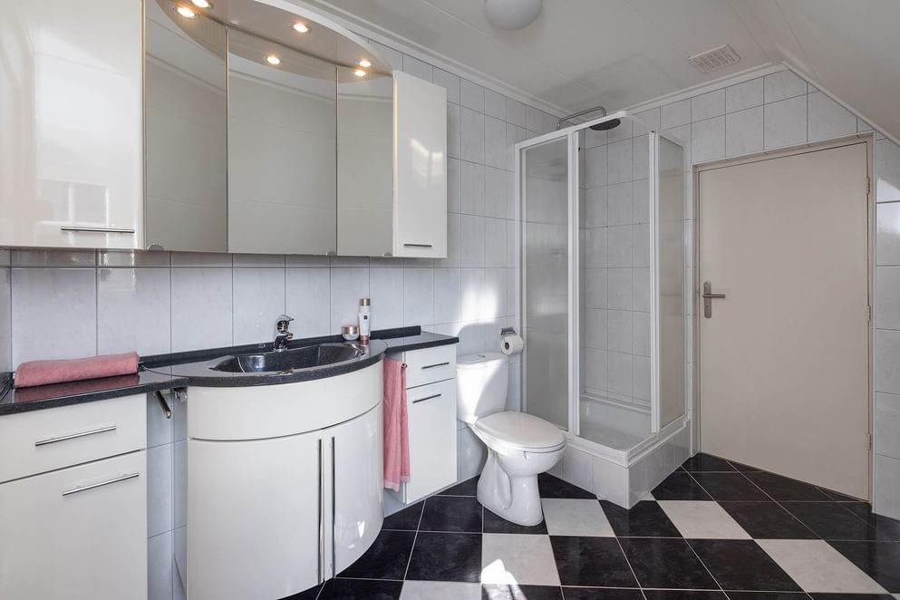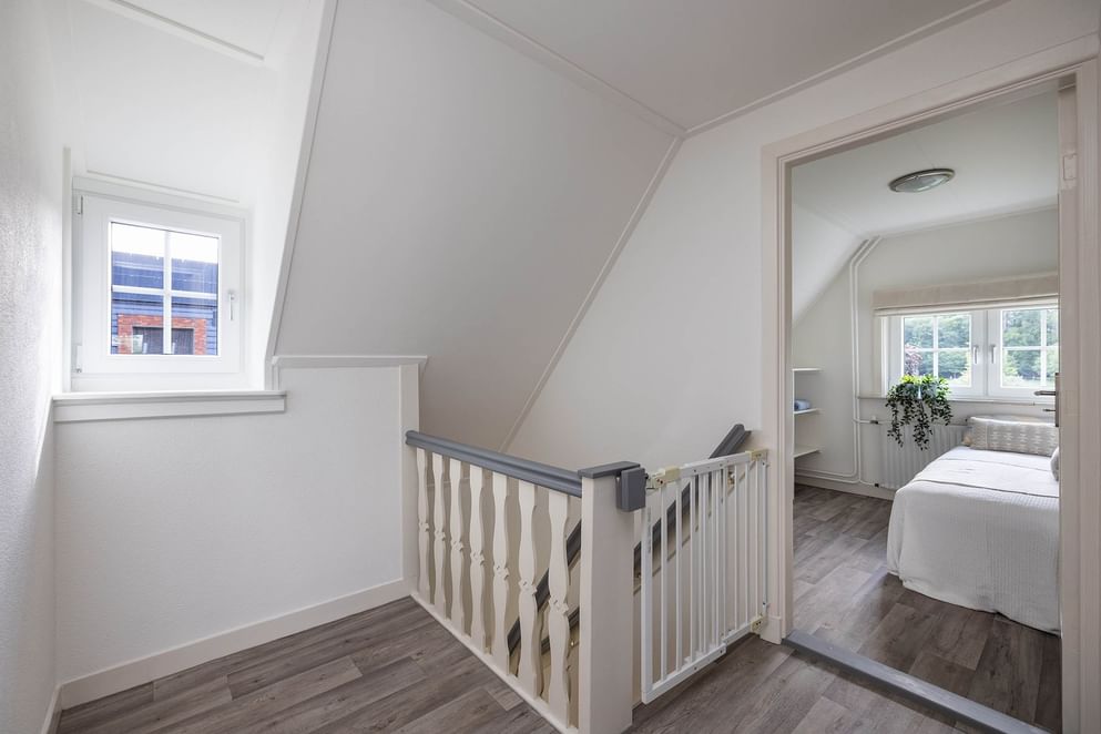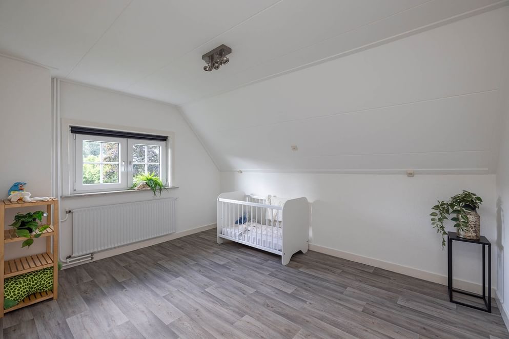 Via de trap bereik je de overloop met toegang tot 3 royale slaapkamers, allen voorzien van kunststof kozijnen en HR+++ glas. Ook bevindt zich hier een tweede badkamer met douche, wastafel en toilet. Achter deze badkamer bevindt zich de zolderruimte. Ideaal als bergzolder of de mogelijkheid voor een vijfde slaapkamer.