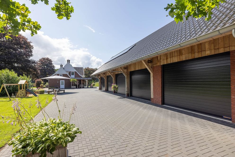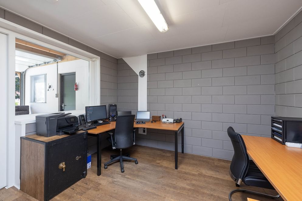 * Vrijstaande schuur met kantoor en 5 elektrische deuren, gebouwd in 2018