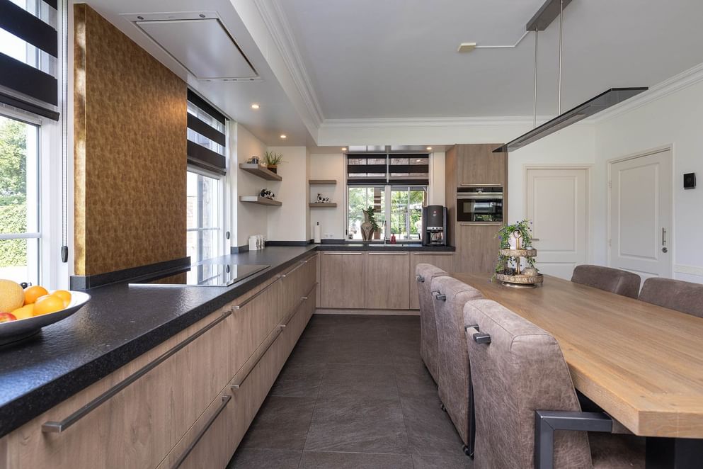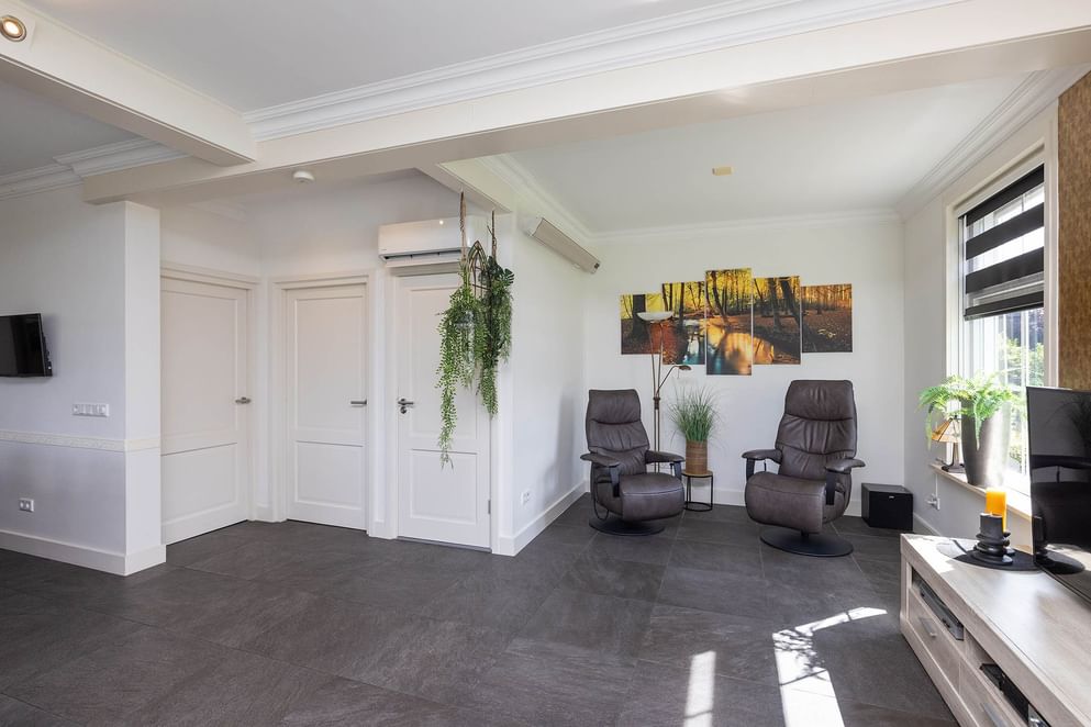 De woning is oorspronkelijk gebouwd in 1951, maar in 2017 grondig gemoderniseerd en verduurzaamd. Denk aan vloerverwarming, een nieuwe keuken en badkamer op de begane grond, kunststof kozijnen met HR+++ beglazing (begane grond in 2023, verdieping in 2024), airconditioning en 20 zonnepanelen. Aan comfort geen gebrek, en met voorzieningen als screens en een nette kelder van 3 bij 3 meter met gecoate vloer is ook aan de praktische kant gedacht. De vrijstaande schuur achter het huis, is een absoluut pluspunt: voorzien van vijf elektrisch bedienbare overheaddeuren, een kantoorruimte met elektrische vloerverwarming en een carport voor twee auto's. Het geheel staat op een fraai aangelegd perceel met volop privacy en een handmatig bedienbare toegangspoort. Aan de zijkant van de woning is een sfeervol, overdekt terras gerealiseerd dat volledig afsluitbaar is met glazen schuifwanden: een heerlijke plek om in alle seizoenen van het buitenleven te genieten.