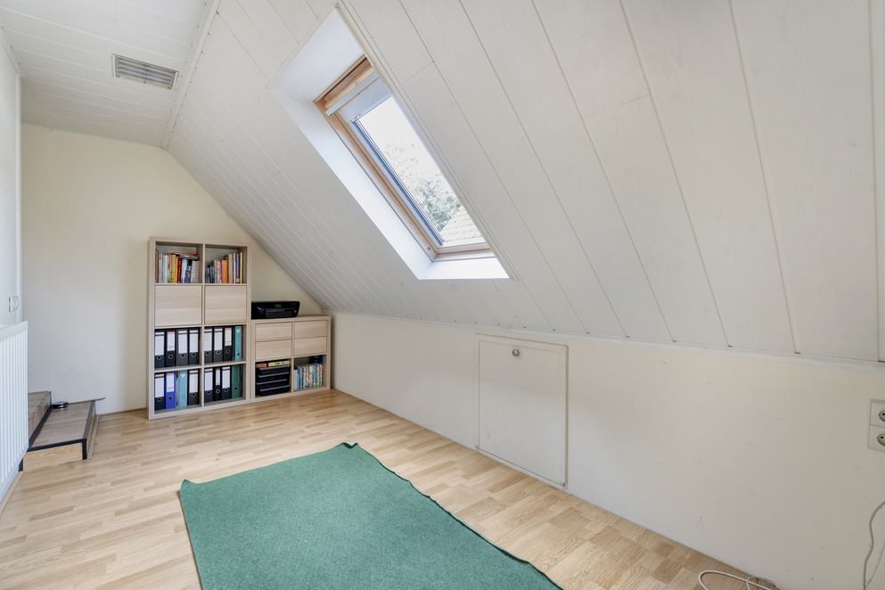 Middels een vlizotrap kom je op de geheel bevloerde ruime bergzolder.