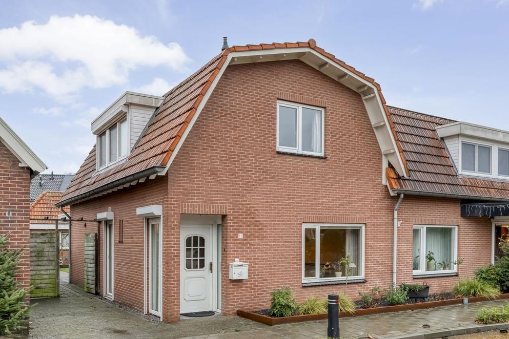 Deze hoekwoning is in 1990 volledig herbouwd, ligt op een mooie locatie en beschikt over een verrassend ruime woonkamer, woonkeuken, een zonnige tuin op het zuidwesten en een praktische stenen berging met overdekt terras en extra bergruimte op de vliering. De woning is degelijk gebouwd en goed onderhouden, en biedt met onder andere een houtkachel, vloerverwarming op de begane grond en zonnepanelen een aangenaam wooncomfort. Tegelijkertijd is dit een woning die geheel naar eigen wens gemoderniseerd kan worden; er zijn volop mogelijkheden om het huis aan te passen aan de woonwensen van nu en er echt een persoonlijk thuis van te maken. De achtertuin is gunstig gelegen op het zuidwesten en biedt veel privacy en fijne plekken om te ontspannend of te genieten van de zon.