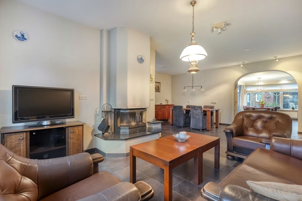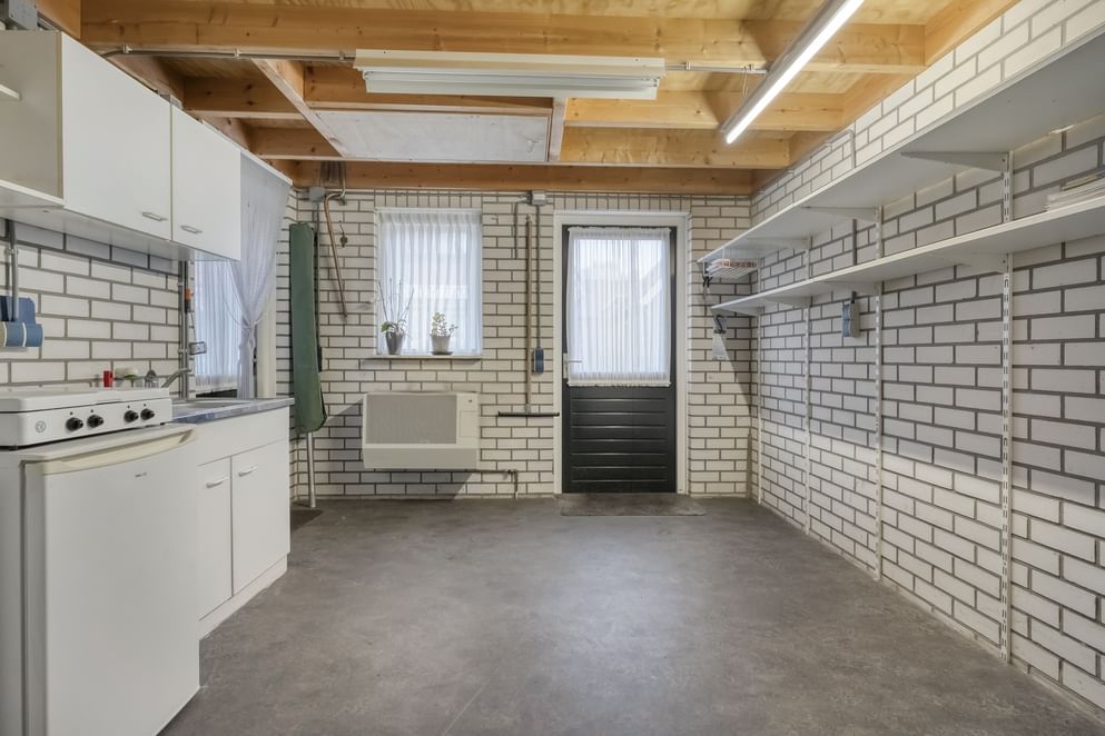 - Grote schuur aanwezig in de achtertuin voorzien van een gevelkachel