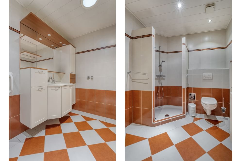 Vanaf de overloop zijn twee slaapkamers en de badkamer te bereiken. De twee slaapkamers zijn ruim opgezet en de master bedroom beschikt over een grote inbouwkast en een loggia. De badkamer is uitgerust met een groot wastafelmeubel, toilet, inloopdouche en vloerverwarming.