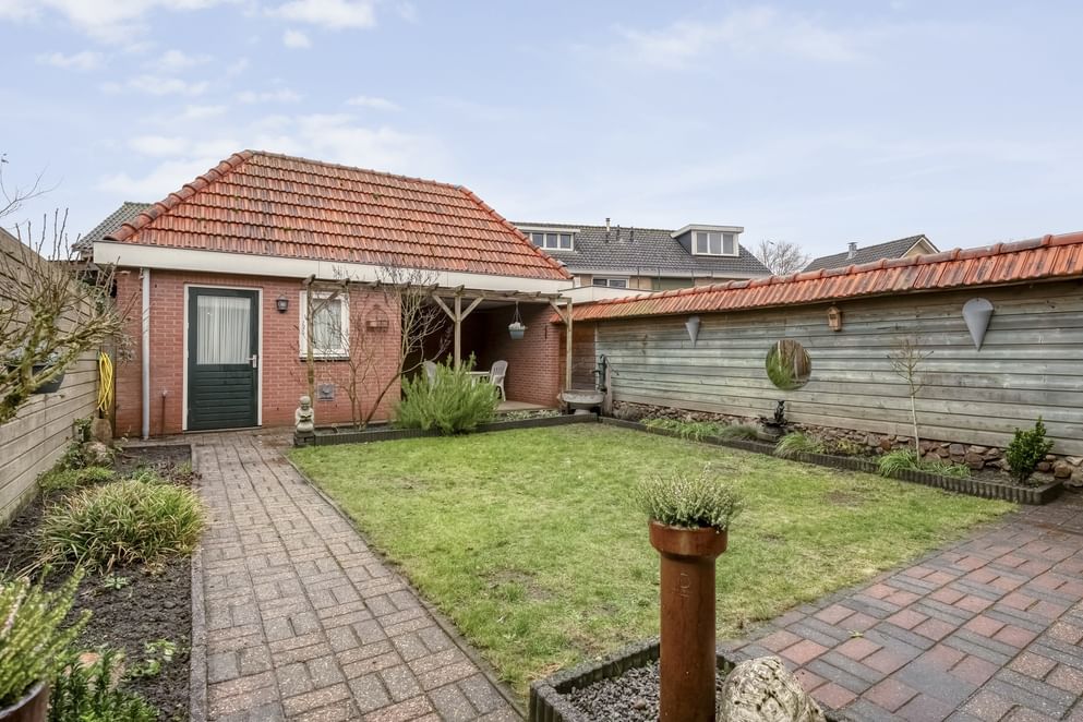 De achtertuin is gelegen op het zuidwesten en biedt veel privacy en zon. De tuin is verzorgd aangelegd, biedt voldoende ruimte om te zitten én heeft een achterom. Hier geniet je de hele dag door van een rustige en groene omgeving. Achterin de tuin is een ruime in spouw gebouwde stenen berging met vliering, bergruimte en overdekt terras te vinden. Dit maakt de ruimte uitermate geschikt als hobby of klusruimte!