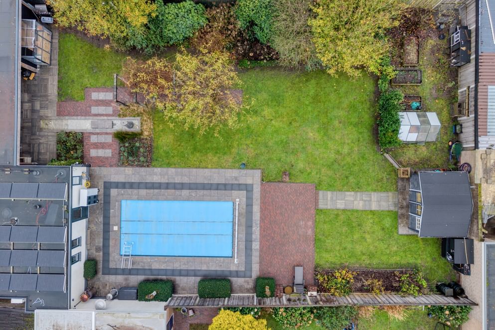 Ook buiten is het genieten, de tuin is ruim opgezet, onderhoudsvriendelijk ingericht en voorzien van een luxe overkapping met lichtstraat. Het absolute pronkstuk is het ingebouwde zwembad, waardoor je hier het hele jaar door een vakantiegevoel hebt.