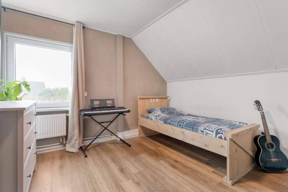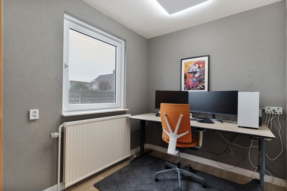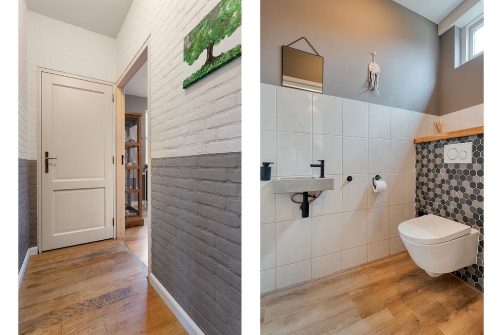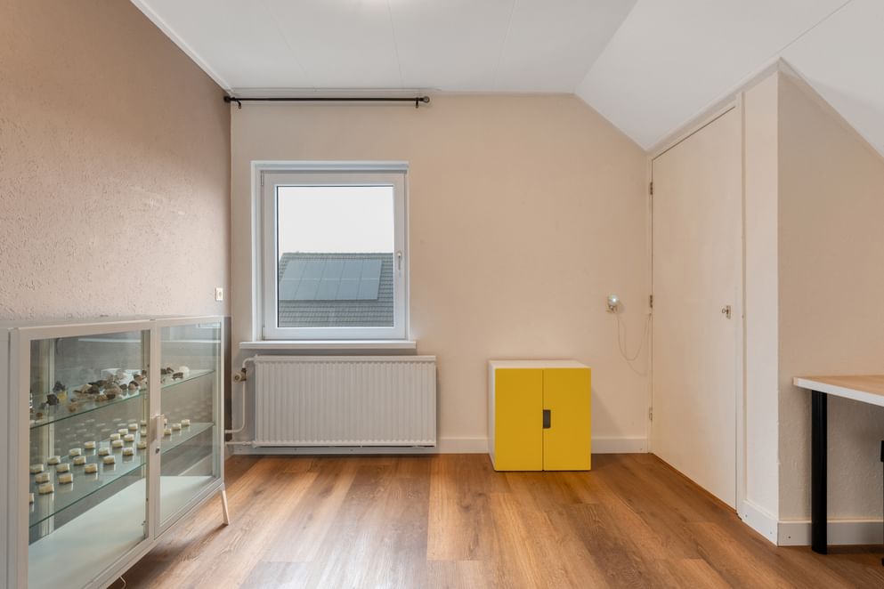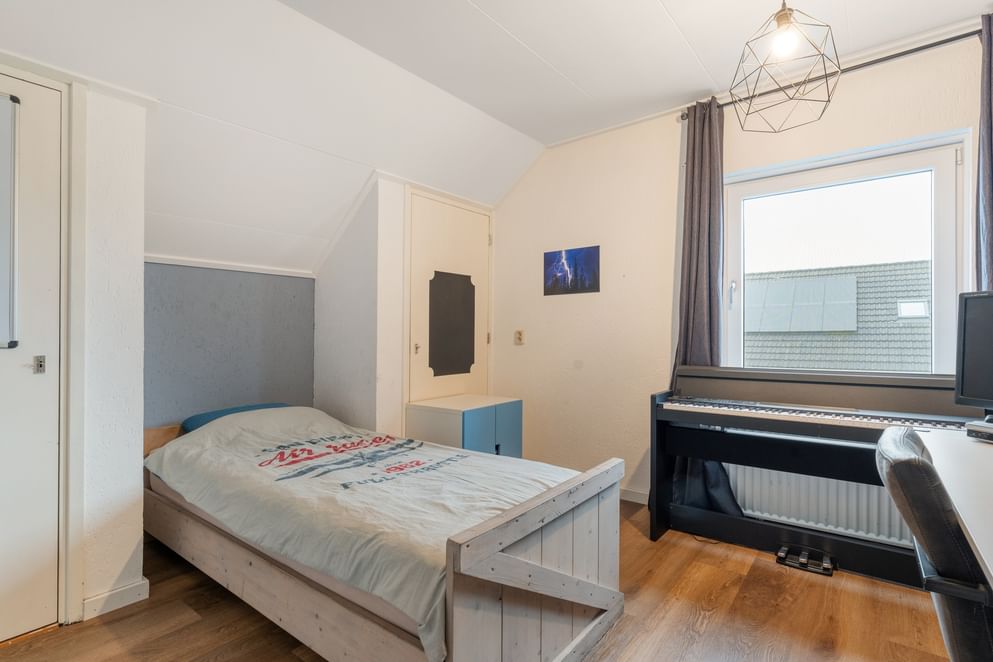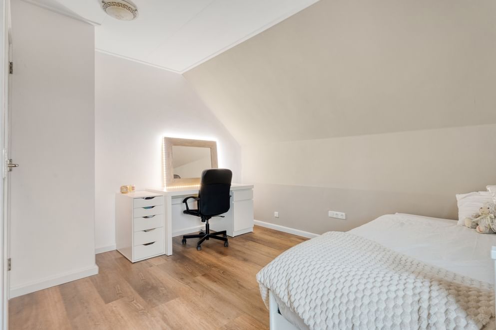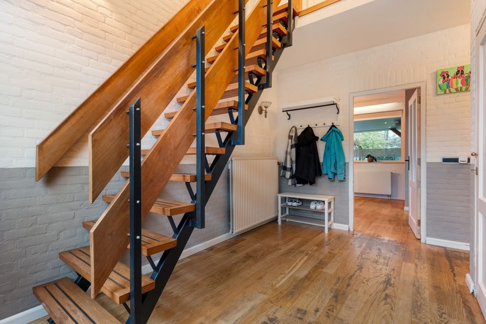 Voor de woning ligt een royale oprit met plek voor zeker drie auto’s, inclusief een eigen laadpaal. Binnenkomend in de ruime hal vind je het toilet en de vide met trapopgang naar de eerste verdieping. Direct naast de entree bevindt zich een extra kamer die uitstekend te gebruiken is als slaapkamer, kantoor of hobbyruimte.