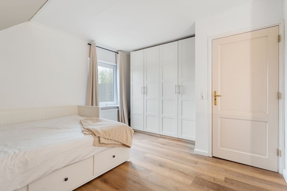 Via een vlizotrap bereik je de zolder, die over de volledige breedte extra bergruimte biedt.