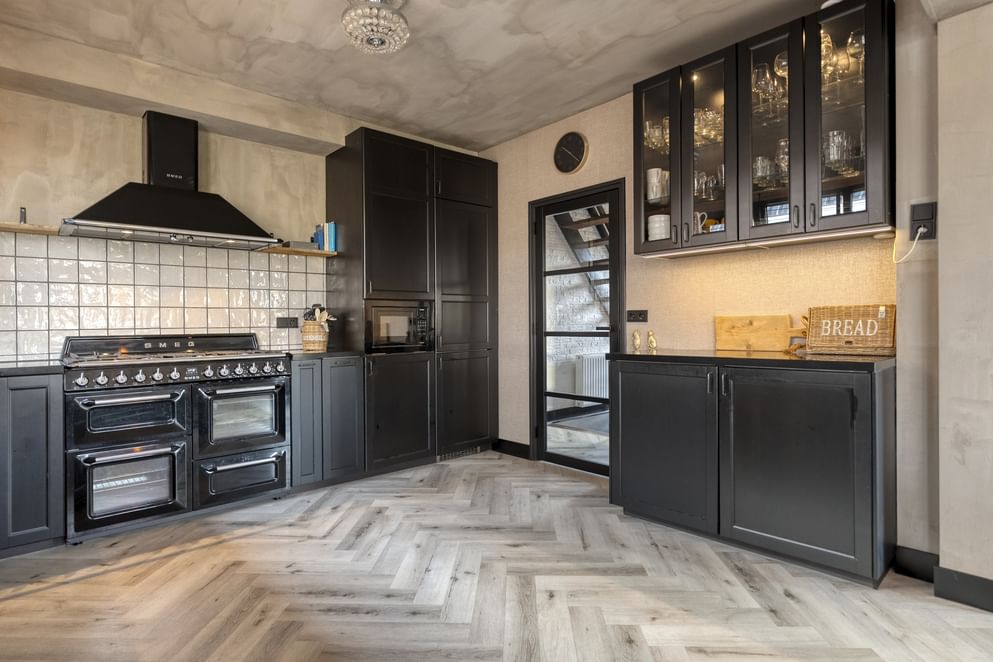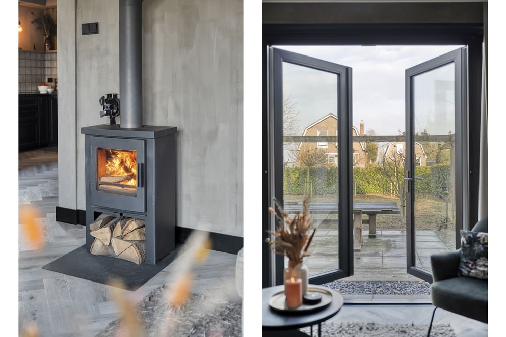 Zodra je de woning binnenstapt, voel je direct de warmte en zie je de moderne afwerking. De woning beschikt over een moderne keuken, voorzien van strakke inbouwapparatuur. Opvallend zijn de Smeg-afzuiging en oven, die zowel functioneel als stijlvol zijn en het koken tot een plezier maken. De woonkamer heeft een prettige open verbinding met de keuken en is voorzien van een sfeervolle houtkachel. Via de openslaande deuren heb je direct uitzicht en toegang op de ruime voortuin. Via de hal is er ook toegang tot de zeer ruime kelder, die zich onder de gehele woning bevindt.