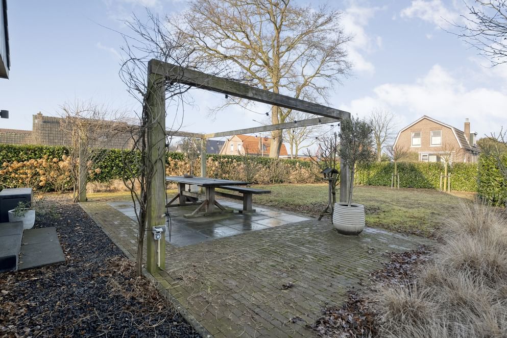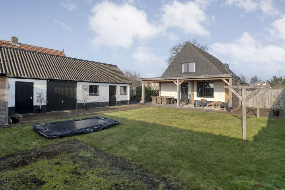 De tuin is een echte eyecatcher. Met de tuin rondom voelt het landelijk aan en is er voldoende ruimte voor meerdere zitplekken. De achtertuin beschikt over een ruime overkapping en een grote garage die plaats biedt aan een auto en opslag voor bijvoorbeeld tuingereedschap.