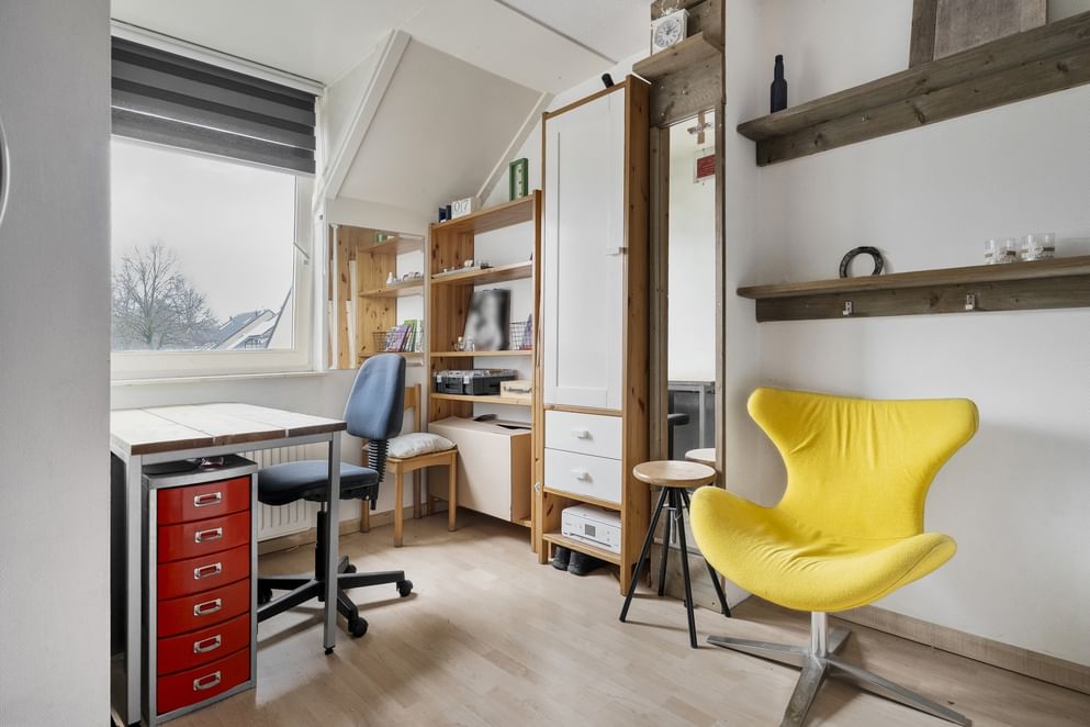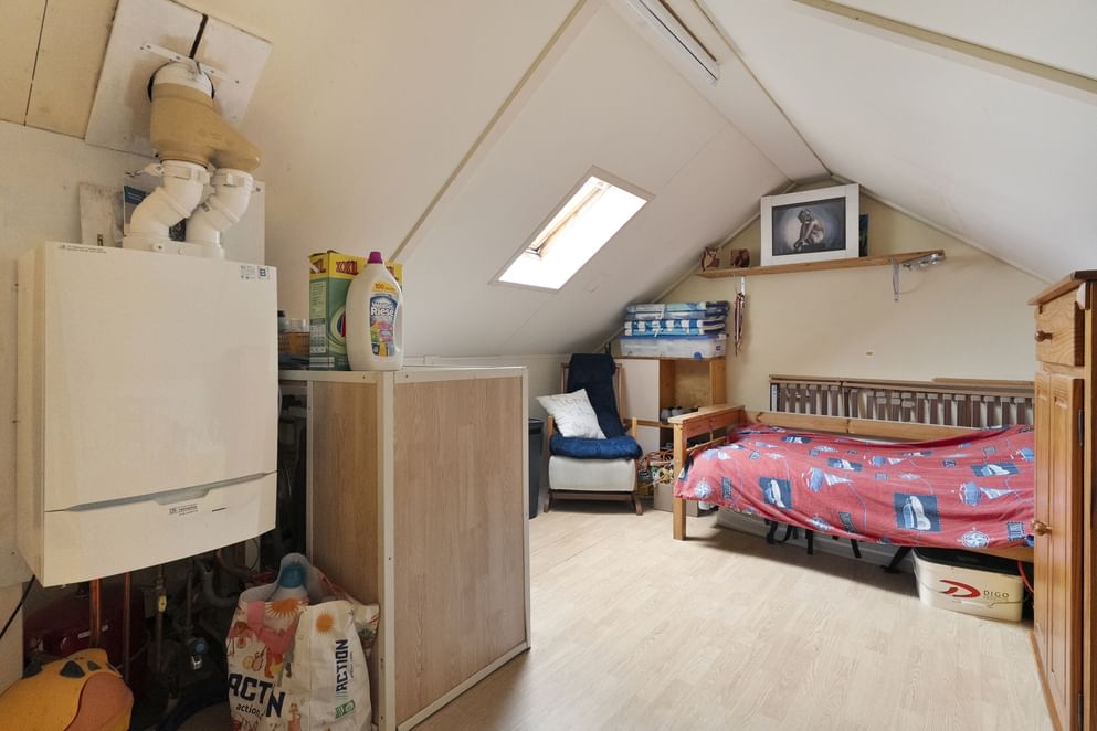 De tweede verdieping is verrassend ruim en daardoor geschikt voor meerdere doeleinden. Denk aan een kantoor, extra slaapkamer, hobbyruimte of extra opslag. Hier bevindt zich tevens de C.V.-ketel en de witgoedaansluiting.