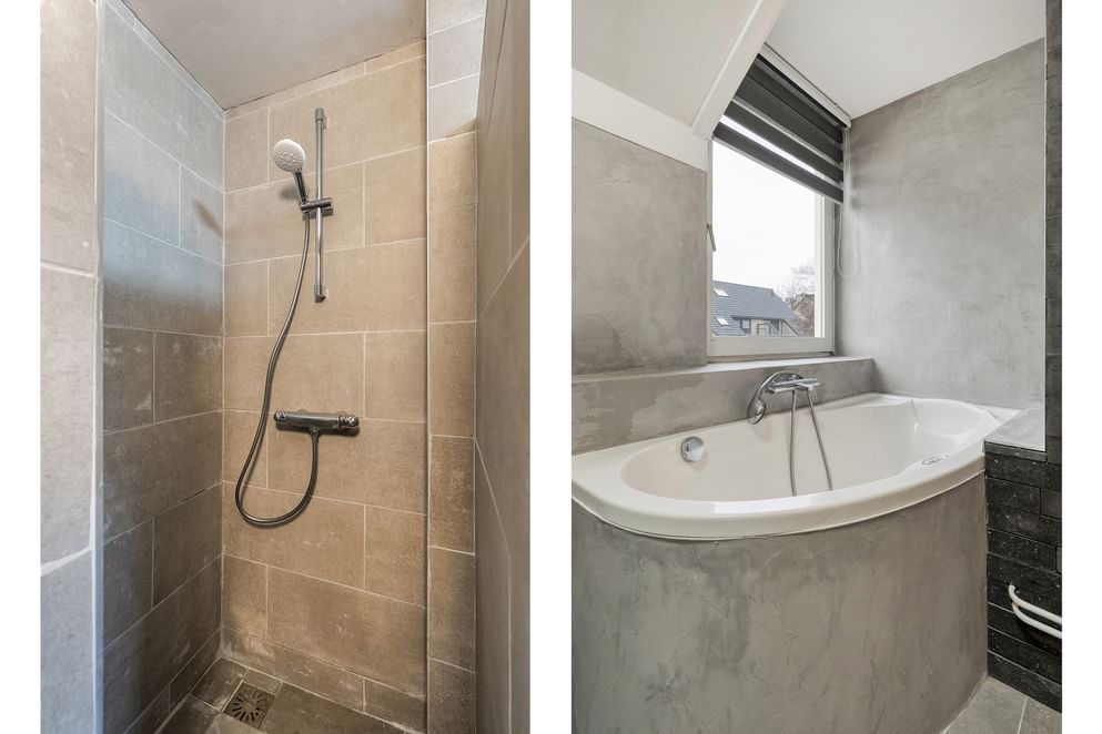De eerste verdieping beschikt over drie ruime slaapkamers, allemaal met een goede lichtinval. De badkamer is modern en compleet vernieuwd, voorzien van een inloopdouche, toilet, wastafel en ligbad. Een fijne, comfortabele ruimte waar je helemaal tot rust kunt komen.