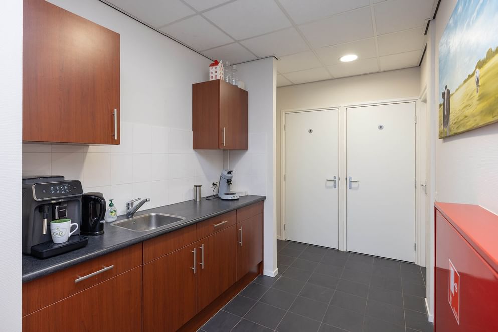 Entree, pantry met keukenblok, 2x toiletruimte, archiefruimte, drie ruime kantoor-/praktijkruimtes.