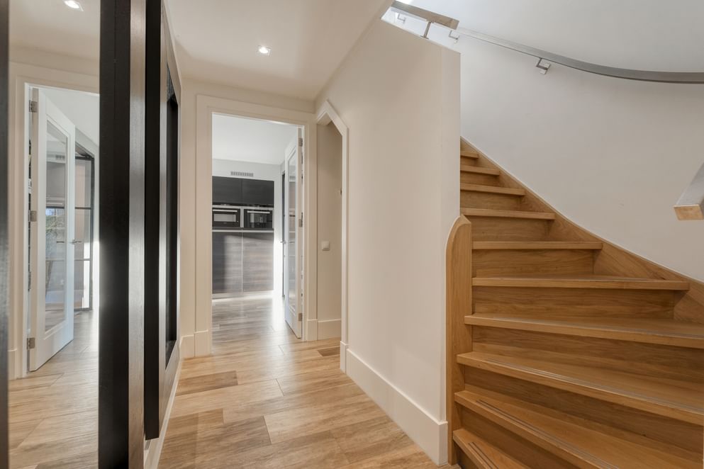 De overloop, welke is voorzien van een airconditioning biedt toegang tot drie royale slaapkamers. Daarnaast vind je hier de badkamer en een separaat toilet. De master bedroom aan de achterzijde van de woning is ruim en beschikt over een eigen inloopkast. De twee andere slaapkamers zijn eveneens ruim en licht. De badkamer is luxe afgewerkt en voorzien van een ligbad, inloopdouche en dubbele wastafel.