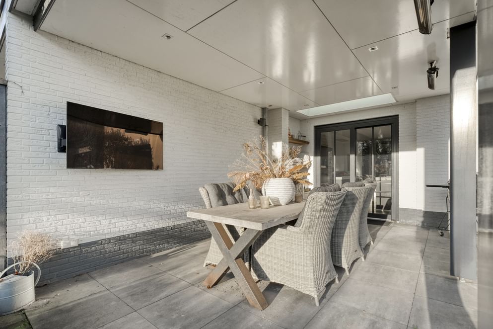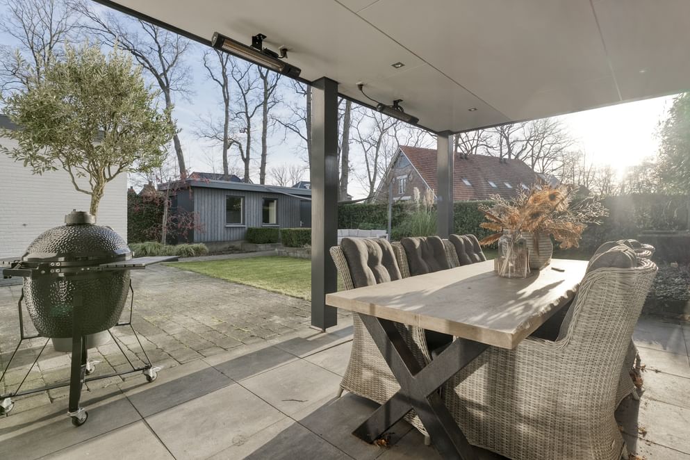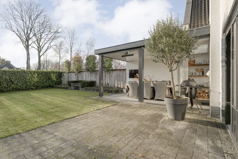 De grote tuin is onderhoudsvriendelijk aangelegd met meerdere zitplekken en biedt veel privacy. Dankzij de gunstige ligging op het zuiden geniet je hier bijna de hele dag van de zon, of je nu kiest voor het overdekte terras of een andere fraaie plek.