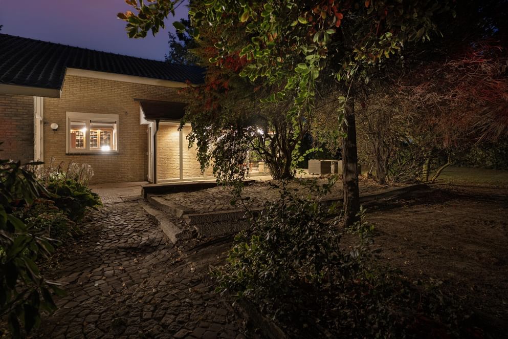 Bij binnenkomst kom je in de hal, waar zich het toilet bevindt, de trap naar de eerste verdieping en de toegang tot de bijkeuken met de cv-installatie (Intergas 2018). De begane grond beschikt daarnaast over een badkamer met ligbad, douche en wastafel. Aansluitend zijn er twee slaapkamers, die ook uitstekend geschikt zijn als kantoor- of hobbyruimte. Vanuit de hal is er toegang tot de keuken en de woonkamer. De keuken is functioneel ingericht met een inductiekookplaat, vaatwasser, spoelbak en voldoende opbergruimte. De woonkamer voelt ruim aan en is voorzien van een sfeervolle open haard. Vanuit hier is er een mooie verbinding naar de serre, die in 1997 is aangebouwd. Deze ruimte is voorzien van vloerverwarming en kan met rolluiken worden afgescheiden van de eetkamer, waardoor je altijd de gewenste sfeer kunt creëren.