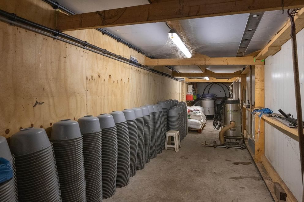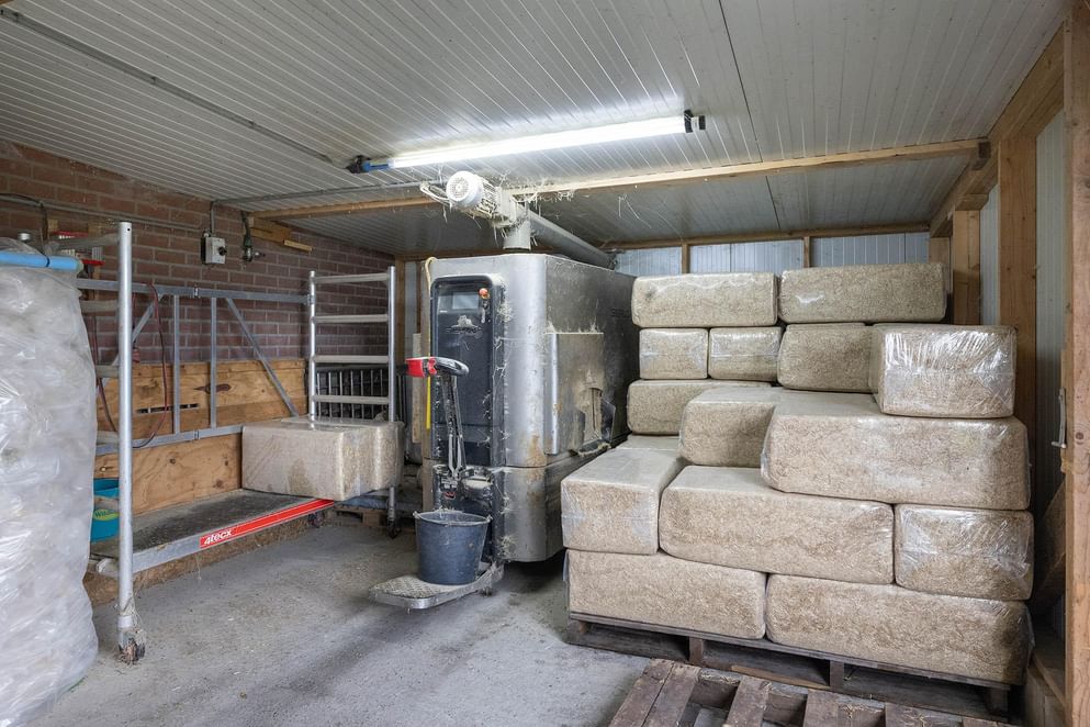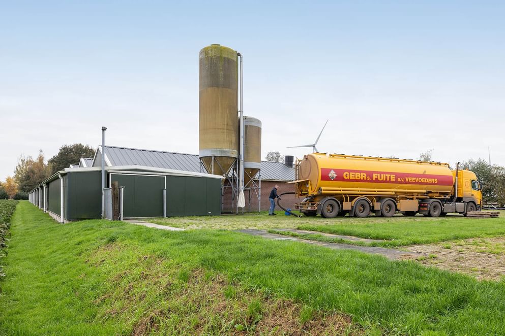 de stallen bijgebouwd. De eerste kap is ingericht met een voerkeuken, voorzien van drie mengers, waarvan twee buffermengers en een eigen broninstallatie (Remon). Verder is er een kantoorruimte, een werkplaatsje en kantine, opslagruimte en een ruimte met