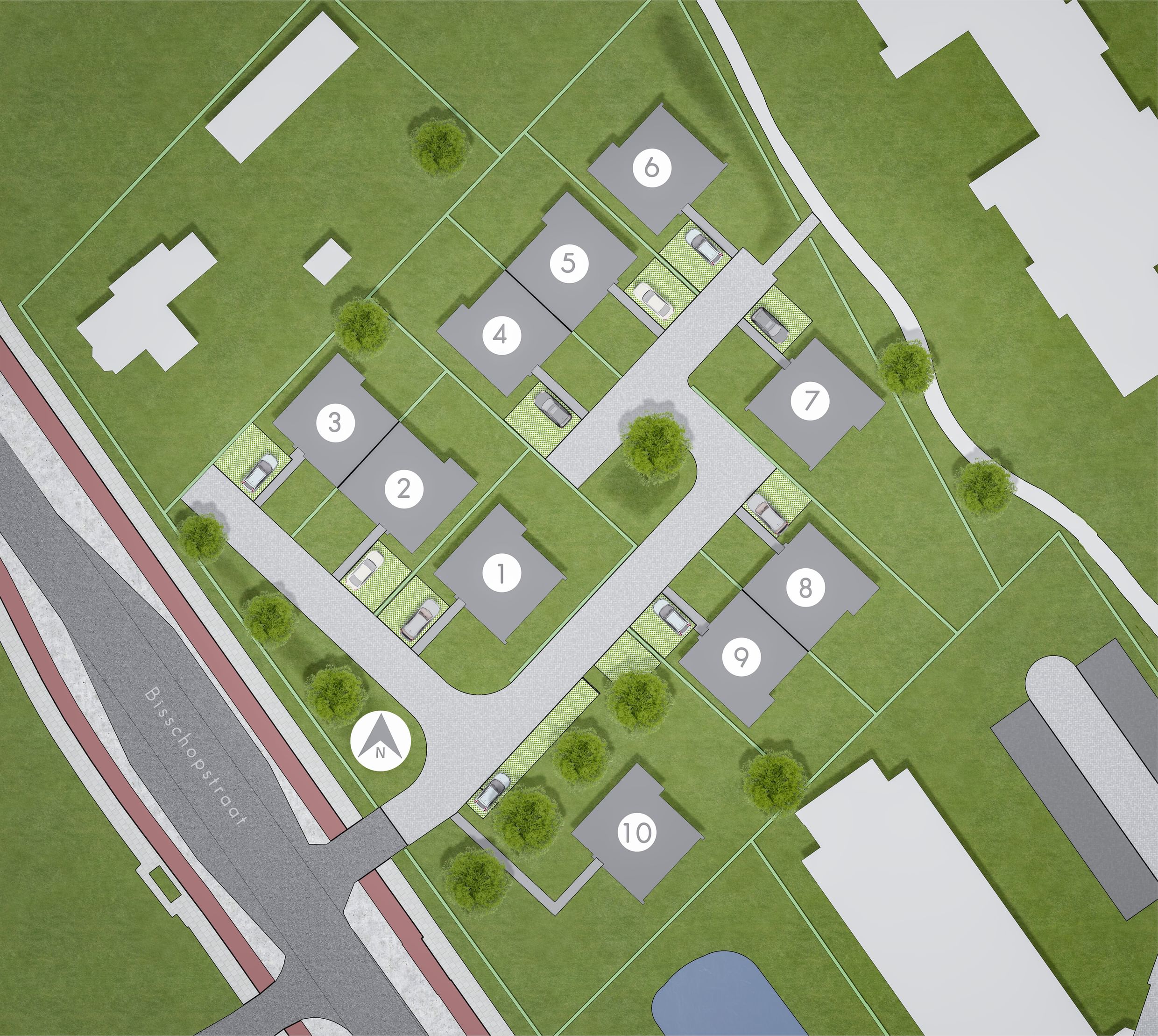De afmeting van de kavels varieert van 275 m² tot 297 m² voor de geschakelde woningen. De kavels van de vrijstaande woningen variëren van 314 m² tot 509 m².